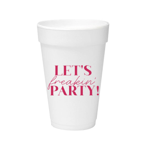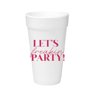 Zoom Show guides Loading product Let's Freaking Party Cup 16-oz. Styrofoam Cup Design ID: 1414879 Click on swatch to see options Choose Your Screen Print Active Color Matte Cup Ink Matte Cup Ink Matte Black Ink Matte Slate Gray Ink Matte Moss Green Ink Matte Leaf Ink Matte Spruce Matte Sky Blue Ink Matte Royal Blue Ink Matte Navy Ink Matte Cobalt Ink Matte Ballet Pink Ink Matte Fuchsia Ink Matte Lipstick Red Ink Matte Merlot Ink Metallic Cup Ink Metallic Cup Ink Silver Ink Gold Ink Copper Ink Choose Your Lid Active Color Lid Option Lid Option White ($0.10 each) None Personalize further with different fonts, graphics, positioning, and sizes. (Optional) Customize More Choose Your Quantity Subtotal PRICE INCLUDES: Select a Proof Option: Print As Is I confirm that I have reviewed my design and I understand it will be produced as shown and no proof will be provided. Digital Proof + $15 I would like an expert FYP designer to look at my design, make minor corrections if necessary, and send me a black and white proof before the order is produced. Orders delivered as soon as 11.04.2025. Exclusions apply. Share Your Design About This Design Our Let's Freaking Party Cup will give your party the personalized touch every host desires. Product Details Product Details Minimum order of 50 Measures 5.25" tall and 3.75" wide at the top Ideal for beer, soft drinks, and water Recyclable Bulk discounts available Expedited shipping options available. Product Description Product Description Want the customization of our custom cups, but easier clean-up? Our styrofoam cups are the answer. Custom printed cups are great for your bachelorette party, or any time where you’re on the go and can’t stop to clean! Like their frost flex siblings, these are a 16 oz. size that’s great for just about any drink. Recyclable styrofoam is perfect for its convenience and versatility—these cups can serve up hot or cold drinks, and no washing needed. Try them at your next party! Product Options 16-oz. Styrofoam Cup 20-oz. Styrofoam Cup 12-oz. Styrofoam Cup Related Products 16-oz. Styrofoam Cup 20-oz. Styrofoam Cup 12-oz. Styrofoam Cup
