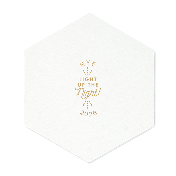 Zoom Show guides Loading product Light Up The Night NYE Coaster Square 4" Design ID: 7744 Click on swatch to see options Choose Your Product Color Active Color Coaster Colors Coaster Colors Black White Eggshell Choose Your Imprint Foil Color Active Color Shiny Foil Shiny Foil Metallic, lustrous finish. *Specialty patterned foil may vary on final print Shiny Champagne Shiny Sterling Silver Shiny 18 Kt Gold Shiny Kiwi / Lime Shiny Leaf Shiny Jade Shiny Royal Blue Shiny Amethyst Shiny Fuchsia Shiny Rose Quartz Shiny Rose Gold NEW Shiny Merlot Shiny Convertible Red Shiny Poppy Shiny Copper *Shiny Holographic Gold *Shiny Holographic Silver *Shiny Rainbow Matte Foil Matte Foil Flat finish. Matte NEW Chocolate Matte Black Matte Slate Gray Matte Dove Grey Matte White Matte Ivory Matte Mimosa Yellow Matte Sunflower Matte Key Lime Matte Leaf Matte Spruce Matte Teal/Peacock Matte Azure Matte Royal Blue Matte Navy Matte Amethyst Matte Pastel Pink Matte Ballet Pink Matte Fuchsia Matte Lipstick Red Matte Merlot Matte Tangerine Satin Foil Satin Foil Muted sheen, brushed finish. Satin Sterling Silver Satin 18 Kt. Gold Satin Copper Penny Satin Fuchsia Satin Lipstick Red Satin Leaf Satin Teal / Peacock Satin French Blue Satin Plum Personalize Your Text Line 1 Line 2 Personalize further with different fonts, graphics, positioning, and sizes. (Optional) Customize More Choose Your Quantity Subtotal PRICE INCLUDES: Select a Proof Option: Print As Is I confirm that I have reviewed my design and I understand it will be produced as shown and no proof will be provided. Digital Proof + $15 I would like an expert FYP designer to look at my design, make minor corrections if necessary, and send me a black and white proof before the order is produced. Orders delivered as soon as 12.19.2025. Exclusions apply. Share Your Design About This Design Our custom Eggshell Square Coaster with Satin 18 Kt. Gold Foil Color has a Light the Night graphic and is good for use in Wedding themed parties and will give your party the personalized touch every host desires. Product Details Product Details Minimum order of 50 Measures 4" square Made from reusable uncoated pulp board Bulk discounts available Expedited shipping options available. Product Description Product Description Custom Square Coasters are the perfect choice to elevate your event's ambiance while protecting your surfaces in style. These customizable coasters are a versatile addition to weddings, anniversary parties, cocktail soirées, and more. They not only shield your furniture but also serve as chic décor pieces that impress your guests. Crafted from pulp board, our Square Coasters exude premium quality, featuring a smooth texture that adds a touch of elegance to any setting and are made for multiple uses. Their square shape provides ample space for glasses and mugs of all sizes, ensuring convenience during your event. Personalize these coasters with your unique design or event details, making them a memorable keepsake for your guests. Explore our other barware. Product Options Square 4" Hexagon Coaster Nouveau Rotated Deco Rotated Ornament Square Leather Coaster Related Products Square 4" Hexagon Coaster Nouveau Rotated Deco Rotated Ornament Square Leather Coaster Material Pulp Board
