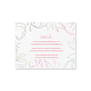 Zoom Show guides Loading product Linear Floral Details Card A2 Details Horizontal Design ID: 806771 Click on swatch to see options Choose Your Paper Color Active Color Invitation Invitation Digital White Choose Your Foil Active Color Shiny Foil Shiny Foil Metallic, lustrous finish. *Specialty patterned foil may vary on final print Shiny Champagne Shiny Sterling Silver Shiny 18 Kt Gold Shiny Kiwi / Lime Shiny Leaf Shiny Spruce Shiny Jade Shiny Royal Blue Shiny Amethyst Shiny Fuchsia Shiny Rose Quartz Shiny Rose Gold NEW Shiny Merlot Shiny Convertible Red Shiny Poppy Shiny Copper *Shiny Holographic Gold *Shiny Holographic Silver *Shiny Rainbow Matte Foil Matte Foil Flat finish. Matte NEW Chocolate Matte Black Matte Slate Gray Matte Dove Grey Matte White Matte Ivory Matte Mimosa Yellow Matte Sunflower Matte Key Lime Matte Leaf Matte Teal/Peacock Matte Azure Matte Royal Blue Matte Navy Matte Amethyst Matte Pastel Pink Matte Ballet Pink Matte Fuchsia Matte Lipstick Red Matte Merlot Matte Tangerine Satin Foil Satin Foil Muted sheen, brushed finish. Satin Sterling Silver Satin 18 Kt. Gold Satin Copper Penny Satin Fuchsia Satin Lipstick Red Satin Leaf Satin Teal / Peacock Satin French Blue Satin Plum Personalize Your Text Line 1 Line 2 Line 3 Line 4 Personalize further with different fonts, graphics, positioning, and sizes. (Optional) Customize More Choose Your Quantity Subtotal PRICE INCLUDES: Select a Proof Option: Print As Is I confirm that I have reviewed my design and I understand it will be produced as shown and no proof will be provided. Digital Proof + $15 I would like an expert FYP designer to look at my design, make minor corrections if necessary, and send me a black and white proof before the order is produced. Orders delivered as soon as 05.11.2026. Exclusions apply. Share Your Design About This Design The ever-popular Full Color with Foil Details Card is printed with Full Color Digital Print Design, Shiny Amethyst Imprint Foil and is printed on a 115 lb. Smooth Natural White paper stock and couldn't be more perfect. It's time to show off your impeccable taste. Product Details Product Details Custom photo digital printed design with artisan-quality foil stamping. Product Description Product Description Elevate your occasion with our Custom Photo with Foil Printing Details Cards. Take your event to the next level with these meticulously crafted cards that blend personalized photos with the shimmering allure of foil printing. Whether it's a wedding, anniversary, birthday bash, or corporate gathering, these cards add a unique charm that's bound to captivate your guests. Check out how-to tips on designing the most memorable event invitations on our website. Crafted with meticulous attention to quality, these details cards boast a luxurious texture that exudes sophistication. The foil printing lends an enchanting gleam, catching every eye and making your event details truly stand out. With unwavering durability, these cards serve as delightful keepsakes for your attendees. Their convenient size ensures easy handling, while the thoughtfully curated designs effortlessly match your event's theme. Choose these cards for an unmatched blend of style and substance, and enjoy hassle-free customization to make them uniquely yours. Discover more ways to make your celebration unforgettable by visiting our page on event inspiration! Product Options A2 Details Horizontal A2 Details Horizontal Related Products A2 Details Horizontal A2 Details Horizontal