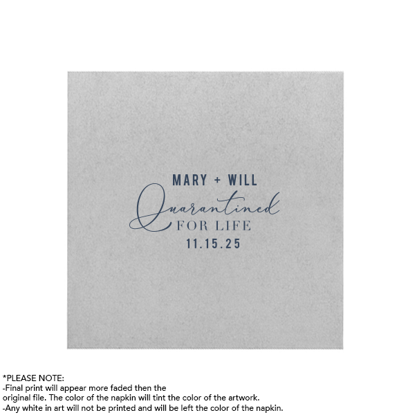 Zoom Show guides Loading product Love in Lockdown Napkin Square Cocktail Napkin Design ID: 1259337 Click on swatch to see options Choose Your Product Color Active Color 3 ply 3 ply Top quality 3 ply. Dyed tissue. Sand Black Slate Platinum Platinum Pin Dot Dove Gray Dove Gray Borderless White White Borderless White Pin Dot White Scallop Ivory Ivory Borderless Mimosa Lemon Pin Dot Kiwi Kiwi Pin Dot Leaf Pin Dot Spruce Pin Dot Olive Pin Dot Light Navy Dark Turquoise Pin Dot Turquoise Powder Blue Pin Dot Lavender Lavender Pin Dot Purple Merlot Pin Dot Fuchsia Candy Pink Antique Pink Pin Dot Ballet Pink Ballet Pink Borderless Convertible Red Light Coral Merlot Out Until: 2025-11-29 Tangerine Out Until: 2025-11-29 Linen Like* - Premium Product Linen Like* - Premium Product Absorbent. Dyed tissue. Airlaid. Premium pricing applies. Pebble Kraft Metallic Copper Ash Grey Black Charcoal Stone Gray Metallic Silver Fog White Ivory Cream Buttercream Metallic Gold Lemon Moss Green Hunter Green Pastel Green Lime Eucalyptus Dark Turquoise Bright Sky Powder Blue Navy Lavender Berry Merlot Magenta Pink Pastel Pink Lipstick Red Terracotta Peach Mango Brown Out Until: 2025-11-21 Olive Green Out Until: 2025-11-30 Plum Out Until: 2025-11-13 Crosshatch* - Premium Product Crosshatch* - Premium Product Absorbent. Printed tissue. Airlaid. Premium pricing applies. Crosshatch Black Crosshatch Gray Crosshatch Stone Crosshatch Violet Crosshatch Lipstick Red Crosshatch Key Lime Out Until: 2025-11-26 Crosshatch Green Out Until: 2025-11-29 Crosshatch Turquoise Out Until: 2025-11-30 Crosshatch Navy Out Until: 2025-11-24 Crosshatch Fuchsia Out Until: 2025-11-30 Woven* - Premium Product Woven* - Premium Product Basketweave texture. Single-sided color. Premium pricing applies. Woven Sand Woven Copper Woven Black Woven Slate Woven Silver Woven Stone Woven Vanilla Woven White Woven Gold Woven Sage Woven Spruce Woven Powder Blue Woven Navy Woven Mauve Woven Convertible Red Woven Tumeric Patterned* - Premium Product Patterned* - Premium Product Exclusive FYP patterns. Single-sided color. Pindot embossed edge. Product pricing applies. Oak Wood Walnut Wood Ebony Wood Ash Wood Birch Wood Marble Sand Marble Gray Marble Navy Marble Taupe Marble Blush Ombre Black Ombre Navy Ombre Robin’s Egg Blue Ombre Rose Petal Ombre Coral Watercolor Sea Glass Watercolor Ocean Watercolor Nightfall Watercolor Sangria Watercolor Hibiscus Watercolor Rose Watercolor Sunrise Leaf Sand Leaf Fern Leaf Rain Leaf Rose Tie Dye Sunflower Tie Dye Leaf Tie Dye Turquoise Tie Dye Fuchsia Shimmer* - Premium Product Shimmer* - Premium Product Elegant European Stardream with iridescent finish. Single-sided color. Pindot embossed edge. Premium pricing applies. Champagne Soft Black Galvanized Silver Crystal White Ivory Pearl Gold Sage Navy Amethyst Herringbone* - Premium Product Herringbone* - Premium Product Absorbent. Printed Herringbone pattern. Airlaid. Premium pricing applies. Herringbone Vanilla Mocha Herringbone Gray Onyx Choose Your Imprint Foil Color Active Color Shiny Foil Shiny Foil Metallic, lustrous finish. *Specialty patterned foil may vary on final print Shiny Champagne Shiny Sterling Silver Shiny 18 Kt Gold Shiny Kiwi / Lime Shiny Leaf Shiny Jade Shiny Royal Blue Shiny Amethyst Shiny Fuchsia Shiny Rose Quartz Shiny Rose Gold NEW Shiny Merlot Shiny Convertible Red Shiny Poppy Shiny Copper *Shiny Holographic Gold *Shiny Holographic Silver *Shiny Rainbow Matte Foil Matte Foil Flat finish. Matte NEW Chocolate Matte Black Matte Slate Gray Matte Dove Grey Matte White Matte Ivory Matte Mimosa Yellow Matte Sunflower Matte Key Lime Matte Leaf Matte Spruce Matte Teal/Peacock Matte Azure Matte Royal Blue Matte Navy Matte Amethyst Matte Pastel Pink Matte Ballet Pink Matte Fuchsia Matte Lipstick Red Matte Merlot Matte Tangerine Satin Foil Satin Foil Muted sheen, brushed finish. Satin Sterling Silver Satin 18 Kt. Gold Satin Copper Penny Satin Fuchsia Satin Lipstick Red Satin Leaf Satin Teal / Peacock Satin French Blue Satin Plum Personalize Your Text Line 1 Line 2 - Back Personalize further with different fonts, graphics, positioning, and sizes. (Optional) Customize More Choose Your Quantity Subtotal PRICE INCLUDES: Select a Proof Option: Print As Is I confirm that I have reviewed my design and I understand it will be produced as shown and no proof will be provided. Digital Proof + $15 I would like an expert FYP designer to look at my design, make minor corrections if necessary, and send me a black and white proof before the order is produced. Orders delivered as soon as 11.05.2025. Exclusions apply. Share Your Design About This Design The Love in Lockdown Napkin design playfully reflects contemporary times. The couple's names command attention in all caps, followed by "Quarantined" in an ornate, scrolling script, emphasizing the term's newfound significance. "FOR LIFE" and the date, conclude this whimsical, yet meaningful representation of commitment and love in a post-pandemic world. Product Details Product Details Classic 3-ply tissue, 4.75” or 5” square Colors vary Signature foil stamp included Bulk discounts available Expedited shipping options available. Product Description Product Description Classic Cocktail Napkins are the perfect companion for any event. Add a touch of refinement to your cocktail parties, weddings, or birthday celebrations. Whether you're sipping a Martini, Old Fashioned, or a signature cocktail, these beverage napkins are the perfect accompaniment to elevate your drink service to new heights.Traditionally designed with a classic pleated edge, highly absorbent, durable, crafted from high-quality, premium-grade paper, our Classic Cocktail Napkins are an excellent, timeless choice. They are soft to the touch, keeping your guests' hands dry and your furniture protected. Once used, simply discard them, making cleanup a breeze. Explore our Cocktail Napkins Collection to find the perfect option for your event. Due to the complexities of man
