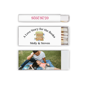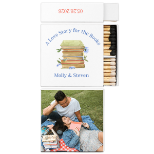 Zoom Show guides Loading product Love Story Book Stack Matches Square Box - Photo/Full Color Design ID: 2884030 This Product is OUT OF STOCK Explore other party essentials Orders delivered as soon as 11.06.2025. Exclusions apply. Share Your Design About This Design Ignite the magic of your love narrative with the Love Story Book Stack Matches, adorned with "A Love Story for the Books" above an illustrative stack of books blooming with flowers. Personalize with the couple's names beneath the image, and choose a special photo for the reverse side. The spine of the matchbook elegantly presents the date, creating a memorable token of your special day. Product Details Product Details 50 minimum 2.125" w X 1.825" l X .375" h Approx. 23 matchsticks Expedited options available Product Description Product Description For Your Party’s photo matchboxes are the perfect way to capture a photo of you and your special someone for your engagement, an illustration for your business, or anything that needs multiple colors in a small area. Our square matchboxes are a great option for a little extra space, or photos that are naturally closer to square in proportion!Like our square matchboxes, our square photo matchboxes consist of paper hand-wrapped around a sturdy cardboard case. The paper is a smooth 100 lb white stock with a full range of digital print colors for a premium feeling and maximum color choice. If you can take a photo of it, we can print it! Product Options Square Box - Photo/Full Color Classic Box - Photo/Full Color Mini Box - Photo/Full Color Large Square Box - Photo/Full Color Horizontal Related Products Square Box - Photo/Full Color Classic Box - Photo/Full Color Mini Box - Photo/Full Color Large Square Box - Photo/Full Color Horizontal