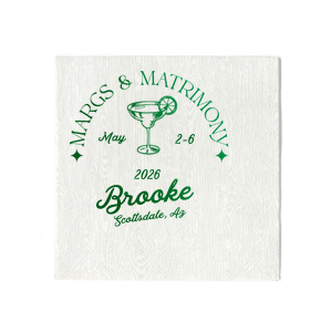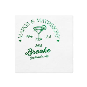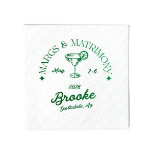 Zoom Show guides Loading product Margs and Matrimony Bachelorette Party Napkin Square Linen Like Cocktail Napkin Design ID: 2750413 Click on swatch to see options Choose Your Product Color Active Color Linen Like* - Premium Product Linen Like* - Premium Product Absorbent. Dyed tissue. Airlaid. Premium pricing applies. Pebble Kraft Ash Grey Brown Black Charcoal Stone Gray Fog White Ivory Cream Buttercream Moss Green Olive Green Hunter Green Pastel Green Lime Eucalyptus Dark Turquoise Bright Sky Powder Blue Navy Lavender Magenta Pink Pastel Pink Lipstick Red Terracotta Peach Mango Metallic Silver Metallic Gold Metallic Copper Lemon Out Until: 2026-05-19 Berry Out Until: 2026-05-15 Merlot Crosshatch* - Premium Product Crosshatch* - Premium Product Absorbent. Printed tissue. Airlaid. Premium pricing applies. Crosshatch Black Crosshatch Gray Crosshatch Stone Crosshatch Key Lime Crosshatch Green Crosshatch Navy Crosshatch Turquoise Out Until: 2026-05-10 Crosshatch Violet Out Until: 2026-05-14 Crosshatch Fuchsia Out Until: 2026-01-29 Crosshatch Lipstick Red Out Until: 2026-05-16 Herringbone* - Premium Product Herringbone* - Premium Product Absorbent. Printed Herringbone pattern. Airlaid. Premium pricing applies. Herringbone Gray Onyx Herringbone Vanilla Mocha Out Until: 2026-04-21 Choose Your Imprint Foil Color Active Color Shiny Foil Shiny Foil Metallic, lustrous finish. *Specialty patterned foil may vary on final print Shiny Champagne Shiny Sterling Silver Shiny 18 Kt Gold Shiny Kiwi / Lime Shiny Leaf Shiny Spruce Shiny Jade Shiny Royal Blue Shiny Amethyst Shiny Fuchsia Shiny Rose Quartz Shiny Rose Gold NEW Shiny Merlot Shiny Convertible Red Shiny Poppy Shiny Copper *Shiny Holographic Gold *Shiny Holographic Silver *Shiny Rainbow Matte Foil Matte Foil Flat finish. Matte NEW Chocolate Matte Black Matte Slate Gray Matte Dove Grey Matte White Matte Ivory Matte Mimosa Yellow Matte Sunflower Matte Key Lime Matte Leaf Matte Teal/Peacock Matte Azure Matte Royal Blue Matte Navy Matte Amethyst Matte Pastel Pink Matte Ballet Pink Matte Fuchsia Matte Lipstick Red Matte Merlot Matte Tangerine Satin Foil Satin Foil Muted sheen, brushed finish. Satin Sterling Silver Satin 18 Kt. Gold Satin Copper Penny Satin Fuchsia Satin Lipstick Red Satin Leaf Satin Teal / Peacock Satin French Blue Satin Plum Personalize Your Text Line 1 Line 2 Line 3 Line 4 Line 5 Personalize further with different fonts, graphics, positioning, and sizes. (Optional) Customize More Choose Your Quantity Subtotal PRICE INCLUDES: Select a Proof Option: Print As Is I confirm that I have reviewed my design and I understand it will be produced as shown and no proof will be provided. Digital Proof + $15 I would like an expert FYP designer to look at my design, make minor corrections if necessary, and send me a black and white proof before the order is produced. Orders delivered as soon as 04.30.2026. Exclusions apply. Share Your Design About This Design Set the scene for a bachelorette blast with the Margs and Matrimony Bachelorette Party Napkin, customized with the bride-to-be's name in elegant script, and detailed with the party's locale and date. The bold margarita illustration infuses a modern vibe into the festivities. Product Details Product Details Deluxe air laid paper Measures approximately 5" x 5" Signature foil stamp included Bulk discounts available Expedited shipping options available. Product Description Product Description Introducing our custom Linen-Like Cocktail Napkins, the epitome of elegance and refinement for your sophisticated gatherings. Whether you're hosting a formal wedding reception or a chic cocktail soirée, these linen cocktail napkins effortlessly complement any table setting. Their soft and gentle touch will leave a lasting impression on guests, showcasing your commitment to providing a truly upscale experience. Meticulously crafted, these napkins exude the luxurious look and feel of fine linen while offering the convenience of being disposable. Crafted from premium-quality materials, they are highly absorbent and the same dimensions as our classic cocktail napkins. With the perfect blend of functionality and elegance, you can elevate any upscale bar or lounge. Product Options Square Linen Like Cocktail Napkin Square Shimmer Cocktail Napkin Square Petite Napkin Woven Square Cocktail Napkin Patterned Square Cocktail Napkin Square Cocktail Napkin Related Products Square Linen Like Cocktail Napkin Square Shimmer Cocktail Napkin Square Petite Napkin Woven Square Cocktail Napkin Patterned Square Cocktail Napkin Square Cocktail Napkin