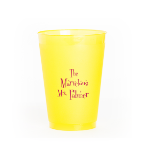 Zoom Show guides Loading product The Marvelous Mrs. Cup 9-oz. Frosted Cup Design ID: 2168934 Click on swatch to see options Choose Your Screen Print Active Color Metallic Cup Ink Metallic Cup Ink Silver Ink Gold Ink Copper Ink Matte Cup Ink Matte Cup Ink Matte Chocolate Ink Matte Black Ink Matte Slate Gray Ink Matte White Ink Matte Sunflower Ink Matte Moss Green Ink Matte Sage Ink Matte Leaf Ink Matte Spruce Matte Teal/Peacock Ink Matte Sky Blue Ink Matte French Blue Ink Matte Royal Blue Ink Matte Navy Ink Matte Cobalt Ink Matte Lavender Ink Matte Ballet Pink Ink Matte Fuchsia Ink Matte Lipstick Red Ink Matte Merlot Ink Matte Tangerine Ink Personalize Your Text Line 1 Line 2 Line 3 Line 4 Personalize further with different fonts, graphics, positioning, and sizes. (Optional) Customize More Choose Your Quantity Subtotal PRICE INCLUDES: Select a Proof Option: Print As Is I confirm that I have reviewed my design and I understand it will be produced as shown and no proof will be provided. Digital Proof + $15 I would like an expert FYP designer to look at my design, make minor corrections if necessary, and send me a black and white proof before the order is produced. Orders delivered as soon as 11.07.2025. Exclusions apply. Share Your Design About This Design Retro accessories bring your party theme to the next level! This cup is perfect for a 50s themed bridal shower, bachelorette party, or birthday. Product Details Product Details Minimum order of 50 Measures 2.75" tall and 3.4" wide at the top Holds 8.7 oz flush fill volume Ideal for wine and spirits on the rocks BPA-free and recyclable Shatterproof and top-rack dishwasher safe Bulk discounts available Expedited shipping options available. Product Description Product Description Custom printed frost flex cups from For Your Party are a classic standby for any event, from weddings to birthdays. Their translucent plastic complements any drink or decor, and are reusable, so your guests can have a keepsake from your special day. Like our 5 oz. frost flex cups, our 9 oz. frost flex cups are made in the USA, BPA free, and can be hand-washed again and again to remember your event. Our 9 oz. size is a little wider, great for wine or drinks on the rocks, and has a flush fill volume of 8.7 oz. Product Options 9-oz. Frosted Cup 5-oz. Frosted Cup 10-oz.Frosted Cup 12-oz. Frosted Cup 12oz Frost Flex Color 14-oz.Frosted Cup 16-oz. Frosted Cup 16oz Frost Flex Color 20-oz. Frosted Cup 24-oz. Frosted Cup Related Products 9-oz. Frosted Cup 5-oz. Frosted Cup 10-oz.Frosted Cup 12-oz. Frosted Cup 12oz Frost Flex Color 14-oz.Frosted Cup 16-oz. Frosted Cup 16oz Frost Flex Color 20-oz. Frosted Cup 24-oz. Frosted Cup