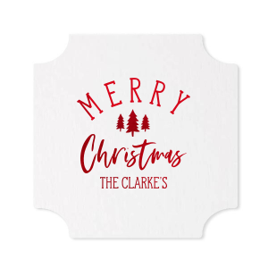 Zoom Show guides Loading product Merry Christmas Coaster Diamond 4" Coaster Design ID: 310275 Click on swatch to see options Choose Your Product Color Active Color Coaster Colors Coaster Colors Black White Eggshell Choose Your Imprint Foil Color Active Color Shiny Foil Shiny Foil Metallic, lustrous finish. *Specialty patterned foil may vary on final print Shiny Champagne Shiny Sterling Silver Shiny 18 Kt Gold Shiny Kiwi / Lime Shiny Leaf Shiny Jade Shiny Royal Blue Shiny Amethyst Shiny Fuchsia Shiny Rose Quartz Shiny Rose Gold NEW Shiny Merlot Shiny Convertible Red Shiny Poppy Shiny Copper *Shiny Holographic Gold *Shiny Holographic Silver *Shiny Rainbow Matte Foil Matte Foil Flat finish. Matte NEW Chocolate Matte Black Matte Slate Gray Matte Dove Grey Matte White Matte Ivory Matte Mimosa Yellow Matte Sunflower Matte Key Lime Matte Leaf Matte Spruce Matte Teal/Peacock Matte Azure Matte Royal Blue Matte Navy Matte Amethyst Matte Pastel Pink Matte Ballet Pink Matte Fuchsia Matte Lipstick Red Matte Merlot Matte Tangerine Satin Foil Satin Foil Muted sheen, brushed finish. Satin Sterling Silver Satin 18 Kt. Gold Satin Copper Penny Satin Fuchsia Satin Lipstick Red Satin Leaf Satin Teal / Peacock Satin French Blue Satin Plum Personalize Your Text Line 1 Personalize further with different fonts, graphics, positioning, and sizes. (Optional) Customize More Choose Your Quantity Subtotal PRICE INCLUDES: Select a Proof Option: Print As Is I confirm that I have reviewed my design and I understand it will be produced as shown and no proof will be provided. Digital Proof + $15 I would like an expert FYP designer to look at my design, make minor corrections if necessary, and send me a black and white proof before the order is produced. Orders delivered as soon as 11.07.2025. Exclusions apply. Share Your Design About This Design Deck the halls—and the tables—with the Merry Christmas Coaster. "Merry" gleams in bold block letters, hovering above a trio of jolly Christmas trees. With "Christmas" playfully scripted, it's a toast to cheerfulness, with room for personalization, ensuring your celebrations are both merry and marked! Product Details Product Details Minimum order of 50 Measures 4" square Made from reusable uncoated pulp board Bulk discounts available Expedited shipping options available. Product Description Product Description Custom Square Coasters are the perfect choice to elevate your event's ambiance while protecting your surfaces in style. These customizable coasters are a versatile addition to weddings, anniversary parties, cocktail soirées, and more. They not only shield your furniture but also serve as chic décor pieces that impress your guests. Crafted from pulp board, our Square Coasters exude premium quality, featuring a smooth texture that adds a touch of elegance to any setting and are made for multiple uses. Their square shape provides ample space for glasses and mugs of all sizes, ensuring convenience during your event. Personalize these coasters with your unique design or event details, making them a memorable keepsake for your guests. Explore our other barware. Product Options Diamond 4" Coaster Round Coaster Hexagon Coaster Deco Related Products Diamond 4" Coaster Round Coaster Hexagon Coaster Deco Material Pulp Board