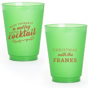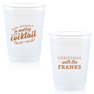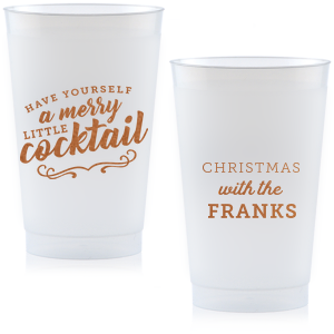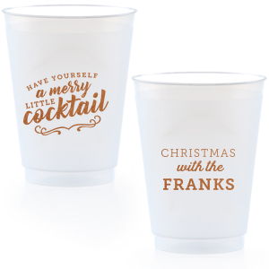 Zoom Show guides Loading product A Merry Little Cocktail Cup 9-oz. Frosted Cup Design ID: 427903 Click on swatch to see options Choose Your Screen Print Active Color Metallic Cup Ink Metallic Cup Ink Silver Ink Gold Ink Copper Ink Matte Cup Ink Matte Cup Ink Matte Chocolate Ink Matte Black Ink Matte Slate Gray Ink Matte White Ink Matte Sunflower Ink Matte Moss Green Ink Matte Sage Ink Matte Leaf Ink Matte Spruce Matte Teal/Peacock Ink Matte Sky Blue Ink Matte French Blue Ink Matte Royal Blue Ink Matte Navy Ink Matte Cobalt Ink Matte Lavender Ink Matte Ballet Pink Ink Matte Fuchsia Ink Matte Lipstick Red Ink Matte Merlot Ink Matte Tangerine Ink Personalize Your Text Line 1 - Back Personalize further with different fonts, graphics, positioning, and sizes. (Optional) Customize More Choose Your Quantity Subtotal PRICE INCLUDES: Select a Proof Option: Print As Is I confirm that I have reviewed my design and I understand it will be produced as shown and no proof will be provided. Digital Proof + $15 I would like an expert FYP designer to look at my design, make minor corrections if necessary, and send me a black and white proof before the order is produced. Orders delivered as soon as 11.05.2025. Exclusions apply. Share Your Design About This Design Our custom Copper Ink 9 oz Frost Flex Cup with Copper Ink Cup Ink Colors has a Merry Little Cocktail graphic and is good for use in Words, Drinks, Holiday themed parties and couldn't be more perfect. It's time to show off your impeccable taste. Product Details Product Details Minimum order of 50 Measures 2.75" tall and 3.4" wide at the top Holds 8.7 oz flush fill volume Ideal for wine and spirits on the rocks BPA-free and recyclable Shatterproof and top-rack dishwasher safe Bulk discounts available Expedited shipping options available. Product Description Product Description Custom printed frost flex cups from For Your Party are a classic standby for any event, from weddings to birthdays. Their translucent plastic complements any drink or decor, and are reusable, so your guests can have a keepsake from your special day. Like our 5 oz. frost flex cups, our 9 oz. frost flex cups are made in the USA, BPA free, and can be hand-washed again and again to remember your event. Our 9 oz. size is a little wider, great for wine or drinks on the rocks, and has a flush fill volume of 8.7 oz. Product Options 9-oz. Frosted Cup 10-oz.Frosted Cup 12-oz. Frosted Cup 12oz Frost Flex Color 14-oz.Frosted Cup 16-oz. Frosted Cup 16oz Frost Flex Color 24-oz. Frosted Cup Related Products 9-oz. Frosted Cup 10-oz.Frosted Cup 12-oz. Frosted Cup 12oz Frost Flex Color 14-oz.Frosted Cup 16-oz. Frosted Cup 16oz Frost Flex Color 24-oz. Frosted Cup