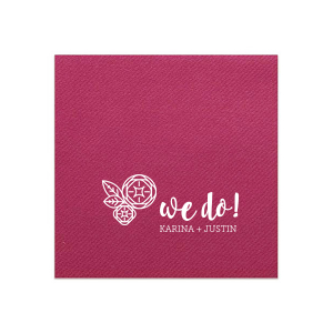 Zoom Show guides Loading product Modern Mandala Flower Napkin Square Cocktail Napkin Design ID: 2169 Click on swatch to see options Choose Your Product Color Active Color 3 ply 3 ply Top quality 3 ply. Dyed tissue. Sand Black Slate Platinum Platinum Pin Dot Dove Gray Dove Gray Borderless White White Borderless White Pin Dot White Scallop Ivory Ivory Borderless Mimosa Lemon Pin Dot Kiwi Kiwi Pin Dot Leaf Pin Dot Spruce Pin Dot Olive Pin Dot Light Navy Dark Turquoise Pin Dot Turquoise Powder Blue Pin Dot Lavender Lavender Pin Dot Purple Fuchsia Candy Pink Antique Pink Pin Dot Ballet Pink Ballet Pink Borderless Convertible Red Light Coral Merlot Out Until: 2025-11-06 Merlot Pin Dot Out Until: 2025-11-28 Tangerine Out Until: 2025-10-28 Linen Like* - Premium Product Linen Like* - Premium Product Absorbent. Dyed tissue. Airlaid. Premium pricing applies. Pebble Kraft Metallic Copper Ash Grey Black Charcoal Stone Gray Metallic Silver Fog White Ivory Cream Buttercream Metallic Gold Lemon Moss Green Olive Green Hunter Green Pastel Green Lime Eucalyptus Dark Turquoise Bright Sky Powder Blue Navy Lavender Berry Merlot Magenta Pink Pastel Pink Lipstick Red Terracotta Peach Mango Brown Out Until: 2025-11-21 Plum Out Until: 2025-11-13 Crosshatch* - Premium Product Crosshatch* - Premium Product Absorbent. Printed tissue. Airlaid. Premium pricing applies. Crosshatch Black Crosshatch Gray Crosshatch Stone Crosshatch Green Crosshatch Turquoise Crosshatch Violet Crosshatch Fuchsia Crosshatch Lipstick Red Crosshatch Key Lime Out Until: 2025-11-26 Crosshatch Navy Out Until: 2025-11-24 Woven* - Premium Product Woven* - Premium Product Basketweave texture. Single-sided color. Premium pricing applies. Woven Sand Woven Copper Woven Black Woven Slate Woven Silver Woven Stone Woven Vanilla Woven White Woven Gold Woven Sage Woven Spruce Woven Powder Blue Woven Navy Woven Mauve Woven Convertible Red Woven Tumeric Patterned* - Premium Product Patterned* - Premium Product Exclusive FYP patterns. Single-sided color. Pindot embossed edge. Product pricing applies. Oak Wood Walnut Wood Ebony Wood Ash Wood Birch Wood Marble Sand Marble Gray Marble Navy Marble Taupe Marble Blush Ombre Black Ombre Navy Ombre Robin’s Egg Blue Ombre Rose Petal Ombre Coral Watercolor Sea Glass Watercolor Ocean Watercolor Nightfall Watercolor Sangria Watercolor Hibiscus Watercolor Rose Watercolor Sunrise Leaf Sand Leaf Fern Leaf Rain Leaf Rose Tie Dye Sunflower Tie Dye Leaf Tie Dye Turquoise Tie Dye Fuchsia Shimmer* - Premium Product Shimmer* - Premium Product Elegant European Stardream with iridescent finish. Single-sided color. Pindot embossed edge. Premium pricing applies. Champagne Soft Black Galvanized Silver Crystal White Ivory Pearl Gold Sage Navy Amethyst Herringbone* - Premium Product Herringbone* - Premium Product Absorbent. Printed Herringbone pattern. Airlaid. Premium pricing applies. Herringbone Vanilla Mocha Herringbone Gray Onyx Choose Your Imprint Foil Color Active Color Shiny Foil Shiny Foil Metallic, lustrous finish. *Specialty patterned foil may vary on final print Shiny Champagne Shiny Sterling Silver Shiny 18 Kt Gold Shiny Kiwi / Lime Shiny Leaf Shiny Jade Shiny Royal Blue Shiny Amethyst Shiny Fuchsia Shiny Rose Quartz Shiny Rose Gold NEW Shiny Merlot Shiny Convertible Red Shiny Poppy Shiny Copper *Shiny Holographic Gold *Shiny Holographic Silver *Shiny Rainbow Matte Foil Matte Foil Flat finish. Matte NEW Chocolate Matte Black Matte Slate Gray Matte Dove Grey Matte White Matte Ivory Matte Mimosa Yellow Matte Sunflower Matte Key Lime Matte Leaf Matte Spruce Matte Teal/Peacock Matte Azure Matte Royal Blue Matte Navy Matte Amethyst Matte Pastel Pink Matte Ballet Pink Matte Fuchsia Matte Lipstick Red Matte Merlot Matte Tangerine Satin Foil Satin Foil Muted sheen, brushed finish. Satin Sterling Silver Satin 18 Kt. Gold Satin Copper Penny Satin Fuchsia Satin Lipstick Red Satin Leaf Satin Teal / Peacock Satin French Blue Satin Plum Personalize Your Text Line 2 Personalize further with different fonts, graphics, positioning, and sizes. (Optional) Customize More Choose Your Quantity Subtotal PRICE INCLUDES: Select a Proof Option: Print As Is I confirm that I have reviewed my design and I understand it will be produced as shown and no proof will be provided. Digital Proof + $15 I would like an expert FYP designer to look at my design, make minor corrections if necessary, and send me a black and white proof before the order is produced. Orders delivered as soon as 11.04.2025. Exclusions apply. Share Your Design About This Design Infuse artistry into your celebration with the Modern Mandala Flower Napkin. A modern, mandala-style flower symbolizes unity, with 'We Do' proudly beside it and the couple's names gracefully inscribed below—an emblem of their shared journey. Product Details Product Details Classic 3-ply tissue, 4.75” or 5” square Colors vary Signature foil stamp included Bulk discounts available Expedited shipping options available. Product Description Product Description Classic Cocktail Napkins are the perfect companion for any event. Add a touch of refinement to your cocktail parties, weddings, or birthday celebrations. Whether you're sipping a Martini, Old Fashioned, or a signature cocktail, these beverage napkins are the perfect accompaniment to elevate your drink service to new heights.Traditionally designed with a classic pleated edge, highly absorbent, durable, crafted from high-quality, premium-grade paper, our Classic Cocktail Napkins are an excellent, timeless choice. They are soft to the touch, keeping your guests' hands dry and your furniture protected. Once used, simply discard them, making cleanup a breeze. Explore our Cocktail Napkins Collection to find the perfect option for your event. Due to the complexities of manufacturing, the size of the embossed border on our 3-ply napkins may vary slightly. These discrepancies are a natural part of the manufacturing process and do not impact the overall quality o