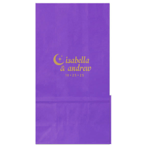 Zoom Show guides Loading product Moon & Stars Couples Bag Popcorn Bag Design ID: 3413854 Click on swatch to see options Choose Your Product Color Active Color Bag Colors Bag Colors Kraft Brown Black White Yellow Lime Purple Red Choose Your Imprint Foil Color Active Color Shiny Foil Shiny Foil Metallic, lustrous finish. *Specialty patterned foil may vary on final print Shiny Champagne Shiny Sterling Silver Shiny 18 Kt Gold Shiny Kiwi / Lime Shiny Leaf Shiny Spruce Shiny Jade Shiny Royal Blue Shiny Amethyst Shiny Fuchsia Shiny Rose Quartz Shiny Rose Gold NEW Shiny Merlot Shiny Convertible Red Shiny Poppy Shiny Copper *Shiny Holographic Gold *Shiny Holographic Silver *Shiny Rainbow Matte Foil Matte Foil Flat finish. Matte NEW Chocolate Matte Black Matte Slate Gray Matte Dove Grey Matte White Matte Ivory Matte Mimosa Yellow Matte Sunflower Matte Key Lime Matte Leaf Matte Teal/Peacock Matte Azure Matte Royal Blue Matte Navy Matte Amethyst Matte Pastel Pink Matte Ballet Pink Matte Fuchsia Matte Lipstick Red Matte Merlot Matte Tangerine Satin Foil Satin Foil Muted sheen, brushed finish. Satin Sterling Silver Satin 18 Kt. Gold Satin Copper Penny Satin Fuchsia Satin Lipstick Red Satin Leaf Satin Teal / Peacock Satin French Blue Satin Plum Choose Your Tissue Color Active Color Tissue Paper Tissue Paper Turquoise 10 sheets Royal Blue 10 sheets Pink 8 sheets Red 8 sheets None Brown 10 sheets Out Until: 2025-12-01 Black 10 sheets Out Until: 2025-12-01 Ivory 10 sheets Out Until: 2025-12-01 Light Blue 10 sheets Out Until: 2025-12-01 Lavender 10 sheets Out Until: 2026-02-13 Fuchsia 10 sheets Out Until: 2025-12-01 Personalize Your Text Line 1 Line 2 Line 3 Personalize further with different fonts, graphics, positioning, and sizes. (Optional) Customize More Choose Your Quantity Subtotal PRICE INCLUDES: Select a Proof Option: Print As Is I confirm that I have reviewed my design and I understand it will be produced as shown and no proof will be provided. Digital Proof + $15 I would like an expert FYP designer to look at my design, make minor corrections if necessary, and send me a black and white proof before the order is produced. Orders delivered as soon as 04.23.2026. Exclusions apply. Share Your Design About This Design Shine bright with the Moon & Stars Couples Bag at your next special party event. Featuring customizable text in your choice of foil stamp colors and bag styles, easily personalize your design to best match your unique vibes! Product Details Product Details Minimum order of 25 Measures 4.25" wide by 8" high by 2.25" deep Gusseted design Bulk discounts available Expedited shipping options availa Product Description Product Description Our Personalized Popcorn Bags are the perfect way to serve up smiles at your next gathering! Elevate your event with these customized bags, adding a personal touch that delights guests and makes every moment memorable. Whether it's a movie night, wedding, or carnival-themed celebration, these popcorn bags are a fantastic addition to the fun. Crafted with impeccable quality, our Personalized Popcorn Bags offer a delightful texture and durability that ensures they hold up to every kernel. Their convenient design makes them easy to carry and share, adding an extra layer of enjoyment to your festivities. Choose from a variety of vibrant colors and designs to perfectly match your event's theme. Elevate your event with our Personalized Popcorn Bags – a tasteful way to make your party pop! Explore our other favor bags. Product Options Popcorn Bag Classic Gift Bag Gift Bag Cookie Bag Lunch Bag Gloss Goodie Bag Classic Wine Bag Wine Gift Bag Related Products Popcorn Bag Classic Gift Bag Gift Bag Cookie Bag Lunch Bag Gloss Goodie Bag Classic Wine Bag Wine Gift Bag