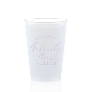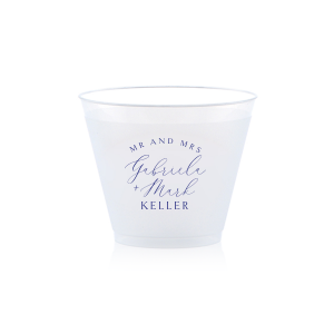Zoom Show guides Loading product Mr And Mrs Names Cup 12-oz. Frosted Cup Design ID: 1049570 Click on swatch to see options Choose Your Screen Print Active Color Metallic Cup Ink Metallic Cup Ink Silver Ink Gold Ink Copper Ink Matte Cup Ink Matte Cup Ink Matte Chocolate Ink Matte Black Ink Matte Slate Gray Ink Matte White Ink Matte Sunflower Ink Matte Moss Green Ink Matte Sage Ink Matte Leaf Ink Matte Spruce Ink Matte Teal/Peacock Ink Matte Sky Blue Ink Matte French Blue Ink Matte Royal Blue Ink Matte Navy Ink Matte Cobalt Ink Matte Lavender Ink Matte Ballet Pink Ink Matte Fuchsia Ink Matte Lipstick Red Ink Matte Merlot Ink Matte Tangerine Ink Personalize Your Text Line 1 Line 2 Line 3 Personalize further with different fonts, graphics, positioning, and sizes. (Optional) Customize More Choose Your Quantity Subtotal PRICE INCLUDES: Select a Proof Option: Print As Is I confirm that I have reviewed my design and I understand it will be produced as shown and no proof will be provided. Digital Proof + $15 I would like an expert FYP designer to look at my design, make minor corrections if necessary, and send me a black and white proof before the order is produced. Orders delivered as soon as 04.27.2026. Exclusions apply. Share Your Design About This Design The ever-popular Pearl White 16 oz Frost Flex Color Cup with Matte Eggplant Ink are a must-have for your next event—whatever the celebration! Product Details Product Details Minimum order of 50 Measures 4.25" tall and 3.25" wide at the top Holds 11.10 oz flush fill volume Perfect for mixed drinks and signature cocktails BPA-free and recyclable Shatterproof and top-rack dishwasher safe Bulk discounts available Expedited shipping options available. Product Description Product Description Frost flex cups from For Your Party are a perfect accessory for any event, from weddings to birthdays. Their translucent plastic complements any drink or color scheme, and can have any art you can imagine. They’re also reusable, so your guests can have a keepsake from your special day. Like our 10 oz. frost flex cups, our 12 oz. frost flex cups are made in the USA, BPA free, and can be hand-washed again and again to remember your event. Our 12 oz. size has the same shape as our 10 oz. size, and is perfect for when you want just a little more space. It has a flush fill volume of 11.1 oz. Product Options 12-oz. Frosted Cup 9-oz. Frosted Cup Related Products 12-oz. Frosted Cup 9-oz. Frosted Cup