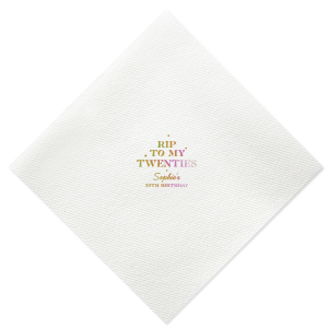 Zoom Show guides Loading product New Decade Starburst Napkin Diamond Cocktail Napkin Design ID: 2804099 Click on swatch to see options Choose Your Napkin Color Active Color 3 ply 3 ply Top quality 3 ply. Dyed tissue. Sand Black Slate Platinum Pin Dot Dove Gray Dove Gray Borderless White White Borderless White Pin Dot White Scallop Ivory Ivory Borderless Kiwi Kiwi Pin Dot Leaf Pin Dot Spruce Pin Dot Olive Pin Dot Dark Navy Pin Dot Light Navy Dark Turquoise Pin Dot Turquoise Powder Blue Pin Dot Lavender Pin Dot Merlot Pin Dot Antique Pink Pin Dot Ballet Pink Ballet Pink Borderless Convertible Red Light Coral Tangerine Pin Dot Platinum Out Until: 2026-04-18 Mimosa Out Until: 2026-05-17 Lemon Pin Dot Out Until: 2026-05-13 Lavender Out Until: 2026-04-17 Merlot Out Until: 2026-05-13 Fuchsia Out Until: 2026-04-21 Candy Pink Out Until: 2026-05-01 Linen Like* - Premium Product Linen Like* - Premium Product Absorbent. Dyed tissue. Airlaid. Premium pricing applies. Pebble Kraft Metallic Copper Ash Grey Brown Black Charcoal Stone Gray Metallic Silver Fog White Ivory Cream Buttercream Metallic Gold Lemon Moss Green Olive Green Hunter Green Pastel Green Lime Eucalyptus Dark Turquoise Out Until: 2026-05-01 Bright Sky Powder Blue Navy Lavender Magenta Pastel Pink Pink Lipstick Red Terracotta Peach Mango Berry Out Until: 2026-05-15 Merlot Crosshatch* - Premium Product Crosshatch* - Premium Product Absorbent. Printed tissue. Airlaid. Premium pricing applies. Crosshatch Black Crosshatch Gray Crosshatch Stone Crosshatch Key Lime Crosshatch Green Crosshatch Navy Crosshatch Turquoise Out Until: 2026-05-10 Crosshatch Violet Out Until: 2026-05-14 Crosshatch Fuchsia Out Until: 2026-01-29 Crosshatch Lipstick Red Out Until: 2026-05-17 Woven* - Premium Product Woven* - Premium Product Basketweave texture. Single-sided color. Premium pricing applies. Woven Sand Woven Copper Woven Black Woven Slate Woven Silver Woven Stone Woven Vanilla Woven White Woven Gold Woven Sage Woven Spruce Woven Powder Blue Woven Navy Woven Mauve Woven Convertible Red Woven Tumeric Patterned* - Premium Product Patterned* - Premium Product Exclusive FYP patterns. Single-sided color. Pindot embossed edge. Product pricing applies. Oak Wood Walnut Wood Ebony Wood Ash Wood Birch Wood Marble Sand Marble Gray Marble Navy Marble Taupe Marble Blush Ombre Black Ombre Navy Ombre Robin’s Egg Blue Ombre Rose petal Ombre Coral Watercolor Sea Glass Watercolor Ocean Watercolor Nightfall Watercolor Sangria Watercolor Hibiscus Watercolor Rose Watercolor Sunrise Leaf Sand Leaf Fern Leaf Rain Leaf Rose Tie Dye Sunflower Tie Dye Leaf Tie Dye Turquoise Tie Dye Fuchsia Shimmer* - Premium Product Shimmer* - Premium Product Elegant European Stardream with iridescent finish. Single-sided color. Pindot embossed edge. Premium pricing applies. Champagne Soft Black Galvanized Silver Crystal White Ivory Pearl Gold Sage Navy Amethyst Herringbone* - Premium Product Herringbone* - Premium Product Absorbent. Printed Herringbone pattern. Airlaid. Premium pricing applies. Herringbone Gray Onyx Herringbone Vanilla Mocha Out Until: 2026-04-21 Choose Your Imprint Foil Color Active Color Shiny Foil Shiny Foil Metallic, lustrous finish. *Specialty patterned foil may vary on final print Shiny Champagne Shiny Sterling Silver Shiny 18 Kt Gold Shiny Kiwi / Lime Shiny Leaf Shiny Spruce Shiny Jade Shiny Royal Blue Shiny Amethyst Shiny Fuchsia Shiny Rose Quartz Shiny Rose Gold NEW Shiny Merlot Shiny Convertible Red Shiny Poppy Shiny Copper *Shiny Holographic Gold *Shiny Holographic Silver *Shiny Rainbow Matte Foil Matte Foil Flat finish. Matte NEW Chocolate Matte Black Matte Slate Gray Matte Dove Grey Matte White Matte Ivory Matte Mimosa Yellow Matte Sunflower Matte Key Lime Matte Leaf Matte Teal/Peacock Matte Azure Matte Royal Blue Matte Navy Matte Amethyst Matte Pastel Pink Matte Ballet Pink Matte Fuchsia Matte Lipstick Red Matte Merlot Matte Tangerine Satin Foil Satin Foil Muted sheen, brushed finish. Satin Sterling Silver Satin 18 Kt. Gold Satin Copper Penny Satin Fuchsia Satin Lipstick Red Satin Leaf Satin Teal / Peacock Satin French Blue Satin Plum Personalize Your Text Line 1 Line 2 Line 3 Personalize further with different fonts, graphics, positioning, and sizes. (Optional) Customize More Choose Your Quantity Subtotal PRICE INCLUDES: Select a Proof Option: Print As Is I confirm that I have reviewed my design and I understand it will be produced as shown and no proof will be provided. Digital Proof + $15 I would like an expert FYP designer to look at my design, make minor corrections if necessary, and send me a black and white proof before the order is produced. Orders delivered as soon as 05.01.2026. Exclusions apply. Share Your Design About This Design Commemorate a milestone birthday with the New Decade Starburst Napkin, personalized with the honoree's name and the dawn of a new era. Featuring "RIP to my twenties" or your custom age farewell, this napkin is sprinkled with celebratory stars, perfect for commemorating the next fabulous decade. Product Details Product Details Classic 3-ply tissue, 4.75” or 5” square Colors vary Signature foil stamp included Bulk discounts available Expedited shipping options available. Product Description Product Description Classic Cocktail Napkins are the perfect companion for any event. Add a touch of refinement to your cocktail parties, weddings, or birthday celebrations. Whether you're sipping a Martini, Old Fashioned, or a signature cocktail, these beverage napkins are the perfect accompaniment to elevate your drink service to new heights.Traditionally designed with a classic pleated edge, highly absorbent, durable, crafted from high-quality, premium-grade paper, our Classic Cocktail Napkins are an excellent, timeless choice. They are soft to the touch, keeping your guests' hands dry and your furniture protected. Once used, simply discard them, making cleanup a breeze. Explore our Cocktail Napkins Collection to find the perfect option f