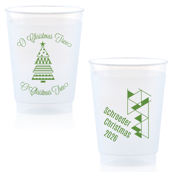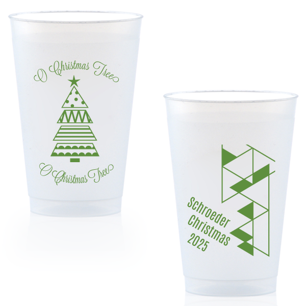 Zoom Show guides Loading product O Christmas Tree Cup 16-oz. Frosted Cup Design ID: 6014 Click on swatch to see options Choose Your Screen Print Active Color Metallic Cup Ink Metallic Cup Ink Silver Ink Gold Ink Copper Ink Matte Cup Ink Matte Cup Ink Matte Chocolate Ink Matte Black Ink Matte Slate Gray Ink Matte White Ink Matte Sunflower Ink Matte Moss Green Ink Matte Sage Ink Matte Leaf Ink Matte Spruce Matte Teal/Peacock Ink Matte Sky Blue Ink Matte French Blue Ink Matte Royal Blue Ink Matte Navy Ink Matte Cobalt Ink Matte Lavender Ink Matte Ballet Pink Ink Matte Fuchsia Ink Matte Lipstick Red Ink Matte Merlot Ink Matte Tangerine Ink Personalize Your Text Back - Line 1 Back - Line 3 Personalize further with different fonts, graphics, positioning, and sizes. (Optional) Customize More Choose Your Quantity Subtotal PRICE INCLUDES: Select a Proof Option: Print As Is I confirm that I have reviewed my design and I understand it will be produced as shown and no proof will be provided. Digital Proof + $15 I would like an expert FYP designer to look at my design, make minor corrections if necessary, and send me a black and white proof before the order is produced. Orders delivered as soon as 12.22.2025. Exclusions apply. Share Your Design About This Design Our personalized Matte Moss Green Ink 16 oz Frost Flex Cup with Matte Moss Green Ink Print Color has a Geo Christmas Tree 2 graphic and a Triangles2RSVP graphic and is good for use in Lovely Press themed parties and will make your guests swoon. Personalize your party's theme today. Product Details Product Details Minimum order of 50 Measures 4.5" tall and 3.5" wide at the top Holds 15.1 oz flush fill volume Ideal for beer BPA-free and recyclable Shatterproof and top-rack dishwasher safe Bulk discounts available Expedited shipping options available. Product Description Product Description Frost flex cups from For Your Party are a perfect accent to any event, from weddings to birthdays. Their translucent plastic complements any drink or color scheme, and can have any art you can imagine. They’re also reusable, so your guests can have a keepsake from your special day. Like our 14 oz. frost flex cups , our 16 oz. frost flex cups are made in the USA, BPA free, and can be hand-washed again and again to remember your event. Our 16 oz. size is perfect for beer or signature cocktails, and has a flush fill volume of 15.1 oz. Product Options 16-oz. Frosted Cup 14-oz.Frosted Cup 12-oz. Frosted Cup 10-oz.Frosted Cup Related Products 16-oz. Frosted Cup 14-oz.Frosted Cup 12-oz. Frosted Cup 10-oz.Frosted Cup