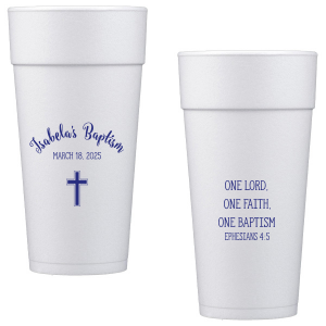 Zoom Show guides Loading product One Baptism Foam Cup 16-oz. Styrofoam Cup Design ID: 1343429 Click on swatch to see options Choose Your Screen Print Active Color Matte Cup Ink Matte Cup Ink Matte Black Ink Matte Slate Gray Ink Matte Moss Green Ink Matte Leaf Ink Matte Spruce Matte Sky Blue Ink Matte Royal Blue Ink Matte Navy Ink Matte Cobalt Ink Matte Ballet Pink Ink Matte Fuchsia Ink Matte Lipstick Red Ink Matte Merlot Ink Metallic Cup Ink Metallic Cup Ink Silver Ink Gold Ink Copper Ink Choose Your Lid Active Color Lid Option Lid Option White ($0.10 each) None Personalize Your Text Line 1 - FRONT Line 2 - FRONT Personalize further with different fonts, graphics, positioning, and sizes. (Optional) Customize More Choose Your Quantity Subtotal PRICE INCLUDES: Select a Proof Option: Print As Is I confirm that I have reviewed my design and I understand it will be produced as shown and no proof will be provided. Digital Proof + $15 I would like an expert FYP designer to look at my design, make minor corrections if necessary, and send me a black and white proof before the order is produced. Orders delivered as soon as 12.12.2025. Exclusions apply. Share Your Design About This Design ForYourParty's personalized Matte Periwinkle Ink 16 oz Styrofoam Cup with Matte Periwinkle Ink Cup Ink Colors has a Cross graphic and is good for use in Christian Symbols themed parties and will impress guests like no other. Make this party unforgettable. Product Details Product Details Minimum order of 50 Measures 5.25" tall and 3.75" wide at the top Ideal for beer, soft drinks, and water Recyclable Bulk discounts available Expedited shipping options available. Product Description Product Description Want the customization of our custom cups, but easier clean-up? Our styrofoam cups are the answer. Custom printed cups are great for your bachelorette party, or any time where you’re on the go and can’t stop to clean! Like their frost flex siblings, these are a 16 oz. size that’s great for just about any drink. Recyclable styrofoam is perfect for its convenience and versatility—these cups can serve up hot or cold drinks, and no washing needed. Try them at your next party! Product Options 16-oz. Styrofoam Cup 12-oz. Styrofoam Cup 20-oz. Styrofoam Cup 24-oz. Styrofoam Cup 32-oz. Styrofoam Cup Related Products 16-oz. Styrofoam Cup 12-oz. Styrofoam Cup 20-oz. Styrofoam Cup 24-oz. Styrofoam Cup 32-oz. Styrofoam Cup