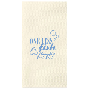 Zoom Show guides Loading product One Less Fish Bachelorette Napkin Patterned Diamond Cocktail Napkin Design ID: 2456992 Click on swatch to see options Choose Your Napkin Color Active Color Patterned* - Premium Product Patterned* - Premium Product Exclusive FYP patterns. Single-sided color. Pindot embossed edge. Product pricing applies. Oak Wood Walnut Wood Ebony Wood Ash Wood Birch Wood Marble Sand Marble Gray Marble Navy Marble Taupe Marble Blush Ombre Black Ombre Navy Ombre Robin’s Egg Blue Ombre Rose petal Ombre Coral Watercolor Sea Glass Watercolor Ocean Watercolor Nightfall Watercolor Sangria Watercolor Hibiscus Watercolor Rose Watercolor Sunrise Leaf Sand Leaf Fern Leaf Rain Leaf Rose Tie Dye Sunflower Tie Dye Leaf Tie Dye Turquoise Tie Dye Fuchsia Choose Your Imprint Foil Color Active Color Shiny Foil Shiny Foil Metallic, lustrous finish. *Specialty patterned foil may vary on final print Shiny Champagne Shiny Sterling Silver Shiny 18 Kt Gold Shiny Kiwi / Lime Shiny Leaf Shiny Spruce Shiny Jade Shiny Royal Blue Shiny Amethyst Shiny Fuchsia Shiny Rose Quartz Shiny Rose Gold NEW Shiny Merlot Shiny Convertible Red Shiny Poppy Shiny Copper *Shiny Holographic Gold *Shiny Holographic Silver *Shiny Rainbow Matte Foil Matte Foil Flat finish. Matte NEW Chocolate Matte Black Matte Slate Gray Matte Dove Grey Matte White Matte Ivory Matte Mimosa Yellow Matte Sunflower Matte Key Lime Matte Leaf Matte Teal/Peacock Matte Azure Matte Royal Blue Matte Navy Matte Amethyst Matte Pastel Pink Matte Ballet Pink Matte Fuchsia Matte Lipstick Red Matte Merlot Matte Tangerine Satin Foil Satin Foil Muted sheen, brushed finish. Satin Sterling Silver Satin 18 Kt. Gold Satin Copper Penny Satin Fuchsia Satin Lipstick Red Satin Leaf Satin Teal / Peacock Satin French Blue Satin Plum Personalize Your Text Line 1 Line 2 Personalize further with different fonts, graphics, positioning, and sizes. (Optional) Customize More Choose Your Quantity Subtotal PRICE INCLUDES: Select a Proof Option: Print As Is I confirm that I have reviewed my design and I understand it will be produced as shown and no proof will be provided. Digital Proof + $15 I would like an expert FYP designer to look at my design, make minor corrections if necessary, and send me a black and white proof before the order is produced. Orders delivered as soon as 05.11.2026. Exclusions apply. Share Your Design About This Design A custom napkin is a fun detail at a bachelorette party! Celebrate one less fish with this personalized napkin. Product Details Product Details Classic 3-ply tissue with pindot embossed edge Measures approximately 4.75" x 4.75" Signature foil stamp included Bulk discounts available Expedited shipping options available. Product Description Product Description Our Patterned Cocktail Napkins showcase a variety of captivating designs that suit different themes and aesthetics. They feature eye-catching patterns that effortlessly elevate the visual appeal of your table setting. Whether you're hosting a formal dinner party, a casual get-together, or a themed event, our Patterned Cocktail Napkins complement any occasion. Their versatility and visual impact allow you to create a memorable atmosphere that reflects your unique taste and style. Embrace the beauty of these intricately patterned napkins and create an ambiance that exudes fun and sophistication. Product Options Patterned Diamond Cocktail Napkin Diamond Cocktail Napkin Diamond Crosshatch Cocktail Napkin Diamond Linen Like Cocktail Napkin Diamond Shimmer Cocktail Napkin Diamond Top Scalloped Luncheon Napkin Diamond Petite Napkin Diamond Luncheon Napkin Woven Diamond Cocktail Napkin Paper Guest Towel Shimmer Guest Hand Towel Paper Guest Towel Related Products Patterned Diamond Cocktail Napkin Diamond Cocktail Napkin Diamond Crosshatch Cocktail Napkin Diamond Linen Like Cocktail Napkin Diamond Shimmer Cocktail Napkin Diamond Top Scalloped Luncheon Napkin Diamond Petite Napkin Diamond Luncheon Napkin Woven Diamond Cocktail Napkin Paper Guest Towel Shimmer Guest Hand Towel Paper Guest Towel