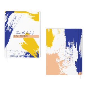 The ever-popular Spiral Journal with Matte Navy Ink Digital Print Colors and fun paint splash design will make your guests swoon. Personalize your party's theme today.