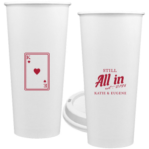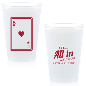 Zoom Show guides Loading product Playing Card Still All In Anniversary Cup 12-oz. Frosted Cup Design ID: 2875614 Click on swatch to see options Choose Your Screen Print Active Color Metallic Cup Ink Metallic Cup Ink Silver Ink Gold Ink Copper Ink Matte Cup Ink Matte Cup Ink Matte Chocolate Ink Matte Black Ink Matte Slate Gray Ink Matte White Ink Matte Sunflower Ink Matte Moss Green Ink Matte Sage Ink Matte Leaf Ink Matte Spruce Matte Teal/Peacock Ink Matte Sky Blue Ink Matte French Blue Ink Matte Royal Blue Ink Matte Navy Ink Matte Cobalt Ink Matte Lavender Ink Matte Ballet Pink Ink Matte Fuchsia Ink Matte Lipstick Red Ink Matte Merlot Ink Matte Tangerine Ink Personalize Your Text Line 1 Line 2 Line 3 Line 4 Personalize further with different fonts, graphics, positioning, and sizes. (Optional) Customize More Choose Your Quantity Subtotal PRICE INCLUDES: Select a Proof Option: Print As Is I confirm that I have reviewed my design and I understand it will be produced as shown and no proof will be provided. Digital Proof + $15 I would like an expert FYP designer to look at my design, make minor corrections if necessary, and send me a black and white proof before the order is produced. Orders delivered as soon as 12.19.2025. Exclusions apply. Share Your Design About This Design Celebrate lasting love with the Playing Card Still All In Anniversary Cup. One side adorns a hearts playing card graphic, personalized with your initials. The other side is inscribed with "Still All In," alongside the celebratory year and the couple's names, symbolizing a winning hand in marriage. Product Details Product Details Minimum order of 50 Measures 4.25" tall and 3.25" wide at the top Holds 11.10 oz flush fill volume Perfect for mixed drinks and signature cocktails BPA-free and recyclable Shatterproof and top-rack dishwasher safe Bulk discounts available Expedited shipping options available. Product Description Product Description Frost flex cups from For Your Party are a perfect accessory for any event, from weddings to birthdays. Their translucent plastic complements any drink or color scheme, and can have any art you can imagine. They’re also reusable, so your guests can have a keepsake from your special day. Like our 10 oz. frost flex cups, our 12 oz. frost flex cups are made in the USA, BPA free, and can be hand-washed again and again to remember your event. Our 12 oz. size has the same shape as our 10 oz. size, and is perfect for when you want just a little more space. It has a flush fill volume of 11.1 oz. Product Options 12-oz. Frosted Cup 14-oz.Frosted Cup 16-oz. Frosted Cup 20-oz. Frosted Cup 24-oz. Frosted Cup 10-oz.Frosted Cup 9-oz. Frosted Cup 16-oz.Stadium Cup 22-oz. Stadium Cup 32-oz. Stadium Cup 12-oz. Styrofoam Cup 16-oz. Styrofoam Cup 20-oz. Styrofoam Cup 24-oz. Styrofoam Cup 32-oz. Styrofoam Cup 16-oz. Color Changing Cup 8oz Paper Cup 12oz Paper Cup 16oz Paper Cup 8oz Paper Cup 12oz Paper Cup 16oz Paper Cup 20oz Paper Cup 24oz Paper Cup Related Products 12-oz. Frosted Cup 14-oz.Frosted Cup 16-oz. Frosted Cup 20-oz. Frosted Cup 24-oz. Frosted Cup 10-oz.Frosted Cup 9-oz. Frosted Cup 16-oz.Stadium Cup 22-oz. Stadium Cup 32-oz. Stadium Cup 12-oz. Styrofoam Cup 16-oz. Styrofoam Cup 20-oz. Styrofoam Cup 24-oz. Styrofoam Cup 32-oz. Styrofoam Cup 16-oz. Color Changing Cup 8oz Paper Cup 12oz Paper Cup 16oz Paper Cup 8oz Paper Cup 12oz Paper Cup 16oz Paper Cup 20oz Paper Cup 24oz Paper Cup