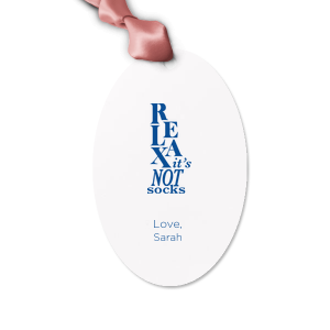 Zoom Show guides Loading product Relax It's Not Socks Gift Tag Large Rectangle Gift Tag - Letterpress Design ID: 2159425 Click on swatch to see options Choose Your Paper Color Active Color Natural Natural Smooth, matte finish. Double-sided color. 100lb+ cover stock. Natural NEW Frost White Natural Ivory Choose Your Imprint Ink Color Active Color Letterpress Inks Letterpress Inks Platinum Black Hot Pink Chocolate Ivy Mint Violet Slate Mint Light Coral Lipstick Red Navy Liberty Blue Teal/Peacock Mustard Gold Choose Your Ribbon Color Active Color Ribbons - Additional Charge Ribbons - Additional Charge Champagne Copper Brownie Espresso Black Slate Sterling Silver White Ivory Pearl Gold Mimosa Sunflower Kiwi Leaf Forest Olive Pistachio Green Tea Peacock Robin’s Egg Blue Turquoise Dark Turquoise Navy Royal Blue Glacier Blue Lavender Violet Cranberry Merlot Candy Pink Ballet Pink Rose Petal Fuchsia Brick Convertible Red Tangerine None Gold Out Until: 2025-11-07 Sky Blue Out Until: 2025-11-28 Amethyst Out Until: 2025-11-28 Plum Out Until: 2025-11-28 Coral Out Until: 2025-11-12 Personalize Your Text Line 1 Line 2 Personalize further with different fonts, graphics, positioning, and sizes. (Optional) Customize More Choose Your Quantity Subtotal PRICE INCLUDES: Select a Proof Option: Print As Is I confirm that I have reviewed my design and I understand it will be produced as shown and no proof will be provided. Digital Proof + $15 I would like an expert FYP designer to look at my design, make minor corrections if necessary, and send me a black and white proof before the order is produced. Orders delivered as soon as 11.10.2025. Exclusions apply. Share Your Design About This Design The ever-popular Relax It's Not Socks Letterpress Gift Tag would be a a wonderful detail adding the final touch on your present. It has funny graphics Relax It's Not Socks and your name on it. Leave them speechless! Product Details Product Details 25 minimum 1.66" w X 4.15" h (rotatable) Volume discounts Expedited options available Product Description Product Description Elevate any occasion with the exquisite touch of our Letterpress Large Rectangle Gift Tags. Perfect for birthdays, weddings, anniversaries, bridal showers, and corporate events, these tags make your gifts stand out. Crafted with impeccable attention to detail, these gift tags showcase a premium quality and tactile texture unique to letterpress printing. Their durability ensures they hold up, no matter the festivity. Convenient for last-minute preparations, yet stunning in design, our tags not only add a personal touch to custom gift bags but also offer shoppers an elegant and timeless keepsake. Product Options Large Rectangle Gift Tag - Letterpress Large Scalloped Gift Tag - Letterpress Diamond Gift Tag - Letterpress Large Wave Gift Tag - Letterpress Double Point Tag - Letterpress Diamond Jewel Gift Tag - Letterpress Large Oval Gift Tag - Letterpress Large Rectangle Gift Tag - Letterpress Related Products Large Rectangle Gift Tag - Letterpress Large Scalloped Gift Tag - Letterpress Diamond Gift Tag - Letterpress Large Wave Gift Tag - Letterpress Double Point Tag - Letterpress Diamond Jewel Gift Tag - Letterpress Large Oval Gift Tag - Letterpress Large Rectangle Gift Tag - Letterpress