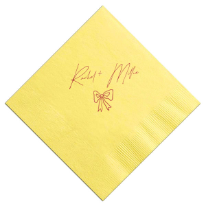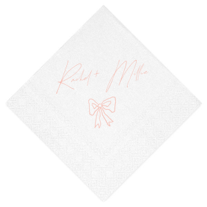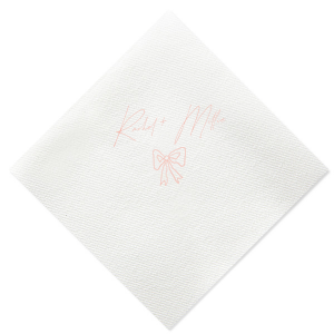 Zoom Show guides Loading product Rustic Bow Matrimony Napkin Diamond Linen Like Cocktail Napkin Design ID: 2780903 Click on swatch to see options Choose Your Napkin Color Active Color Linen Like* - Premium Product Linen Like* - Premium Product Absorbent. Dyed tissue. Airlaid. Premium pricing applies. Pebble Kraft Ash Grey Brown Black Stone Gray Fog White Cream Ivory Olive Green Hunter Green Pastel Green Lime Eucalyptus Dark Turquoise Out Until: 2026-05-01 Bright Sky Powder Blue Navy Lavender Magenta Pastel Pink Pink Lipstick Red Terracotta Peach Mango Metallic Silver Metallic Gold Metallic Copper Charcoal Out Until: 2026-05-23 Buttercream Out Until: 2026-05-24 Lemon Out Until: 2026-05-19 Moss Green Out Until: 2026-05-28 Berry Out Until: 2026-05-15 Merlot Crosshatch* - Premium Product Crosshatch* - Premium Product Absorbent. Printed tissue. Airlaid. Premium pricing applies. Crosshatch Black Crosshatch Gray Crosshatch Stone Crosshatch Key Lime Crosshatch Green Crosshatch Turquoise Crosshatch Navy Crosshatch Violet Crosshatch Fuchsia Crosshatch Lipstick Red Herringbone* - Premium Product Herringbone* - Premium Product Absorbent. Printed Herringbone pattern. Airlaid. Premium pricing applies. Herringbone Gray Onyx Herringbone Vanilla Mocha Out Until: 2026-05-22 Choose Your Imprint Foil Color Active Color Shiny Foil Shiny Foil Metallic, lustrous finish. *Specialty patterned foil may vary on final print Shiny Champagne Shiny Sterling Silver Shiny 18 Kt Gold Shiny Kiwi / Lime Shiny Leaf Shiny Spruce Shiny Jade Shiny Royal Blue Shiny Amethyst Shiny Fuchsia Shiny Rose Quartz Shiny Rose Gold NEW Shiny Merlot Shiny Convertible Red Shiny Poppy Shiny Copper *Shiny Holographic Gold *Shiny Holographic Silver *Shiny Rainbow Matte Foil Matte Foil Flat finish. Matte NEW Chocolate Matte Black Matte Slate Gray Matte Dove Grey Matte White Matte Ivory Matte Mimosa Yellow Matte Sunflower Matte Key Lime Matte Leaf Matte Teal/Peacock Matte Azure Matte Royal Blue Matte Navy Matte Amethyst Matte Pastel Pink Matte Ballet Pink Matte Fuchsia Matte Lipstick Red Matte Merlot Matte Tangerine Satin Foil Satin Foil Muted sheen, brushed finish. Satin Sterling Silver Satin 18 Kt. Gold Satin Copper Penny Satin Fuchsia Satin Lipstick Red Satin Leaf Satin Teal / Peacock Satin French Blue Satin Plum Personalize Your Text Line 1 Personalize further with different fonts, graphics, positioning, and sizes. (Optional) Customize More Choose Your Quantity Subtotal PRICE INCLUDES: Select a Proof Option: Print As Is I confirm that I have reviewed my design and I understand it will be produced as shown and no proof will be provided. Digital Proof + $15 I would like an expert FYP designer to look at my design, make minor corrections if necessary, and send me a black and white proof before the order is produced. Orders delivered as soon as 05.12.2026. Exclusions apply. Share Your Design About This Design Infuse your wedding with a touch of rustic charm with the Rustic Bow Matrimony Napkin, customizable with the couple's names. The hand-drawn bow graphic adds a quaint and heartfelt detail to your nuptial celebrations. Product Details Product Details Deluxe air laid paper Measures approximately 5" x 5" Signature foil stamp included Bulk discounts available Expedited shipping options available. Product Description Product Description Introducing our custom Linen-Like Cocktail Napkins, the epitome of elegance and refinement for your sophisticated gatherings. Whether you're hosting a formal wedding reception or a chic cocktail soirée, these linen cocktail napkins effortlessly complement any table setting. Their soft and gentle touch will leave a lasting impression on guests, showcasing your commitment to providing a truly upscale experience. Meticulously crafted, these napkins exude the luxurious look and feel of fine linen while offering the convenience of being disposable. Crafted from premium-quality materials, they are highly absorbent and the same dimensions as our classic cocktail napkins. With the perfect blend of functionality and elegance, you can elevate any upscale bar or lounge. Product Options Diamond Linen Like Cocktail Napkin Diamond Linen Like Dinner Napkin Diamond Shimmer Cocktail Napkin Diamond Top Scalloped Luncheon Napkin Diamond Extra Large Dinner Napkin Diamond Petite Napkin Diamond Dinner Napkin Woven Diamond Cocktail Napkin Patterned Diamond Cocktail Napkin Diamond Linen Like Luncheon Napkin Diamond Luncheon Napkin Diamond Cocktail Napkin Related Products Diamond Linen Like Cocktail Napkin Diamond Linen Like Dinner Napkin Diamond Shimmer Cocktail Napkin Diamond Top Scalloped Luncheon Napkin Diamond Extra Large Dinner Napkin Diamond Petite Napkin Diamond Dinner Napkin Woven Diamond Cocktail Napkin Patterned Diamond Cocktail Napkin Diamond Linen Like Luncheon Napkin Diamond Luncheon Napkin Diamond Cocktail Napkin