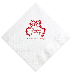 Zoom Show guides Loading product Season's Greetings Bow Napkin Diamond Cocktail Napkin Design ID: 3096448 Click on swatch to see options Choose Your Napkin Color Active Color 3 ply 3 ply Top quality 3 ply. Dyed tissue. Sand Black Slate Platinum Pin Dot Dove Gray Dove Gray Borderless White White Borderless White Pin Dot White Scallop Ivory Ivory Borderless Kiwi Pin Dot Leaf Pin Dot Spruce Pin Dot Olive Pin Dot Dark Navy Pin Dot Light Navy Dark Turquoise Pin Dot Turquoise Powder Blue Pin Dot Lavender Pin Dot Merlot Pin Dot Antique Pink Pin Dot Ballet Pink Ballet Pink Borderless Convertible Red Light Coral Tangerine Pin Dot Platinum Out Until: 2026-04-18 Mimosa Out Until: 2026-05-05 Lemon Pin Dot Out Until: 2026-05-13 Kiwi Out Until: 2026-04-14 Lavender Out Until: 2026-04-17 Merlot Out Until: 2026-05-13 Fuchsia Out Until: 2026-04-21 Candy Pink Out Until: 2026-05-01 Linen Like* - Premium Product Linen Like* - Premium Product Absorbent. Dyed tissue. Airlaid. Premium pricing applies. Pebble Kraft Metallic Copper Ash Grey Brown Black Charcoal Stone Gray Metallic Silver Fog White Ivory Cream Buttercream Metallic Gold Lemon Moss Green Olive Green Hunter Green Pastel Green Lime Eucalyptus Dark Turquoise Bright Sky Powder Blue Navy Lavender Berry Magenta Pastel Pink Pink Lipstick Red Terracotta Peach Mango Merlot Crosshatch* - Premium Product Crosshatch* - Premium Product Absorbent. Printed tissue. Airlaid. Premium pricing applies. Crosshatch Black Crosshatch Gray Crosshatch Stone Crosshatch Key Lime Crosshatch Green Crosshatch Navy Crosshatch Violet Crosshatch Turquoise Out Until: 2026-05-10 Crosshatch Fuchsia Out Until: 2026-01-29 Crosshatch Lipstick Red Out Until: 2026-04-16 Woven* - Premium Product Woven* - Premium Product Basketweave texture. Single-sided color. Premium pricing applies. Woven Sand Woven Copper Woven Black Woven Slate Woven Silver Woven Stone Woven Vanilla Woven White Woven Gold Woven Sage Woven Spruce Woven Powder Blue Woven Navy Woven Mauve Woven Convertible Red Woven Tumeric Patterned* - Premium Product Patterned* - Premium Product Exclusive FYP patterns. Single-sided color. Pindot embossed edge. Product pricing applies. Oak Wood Walnut Wood Ebony Wood Ash Wood Birch Wood Marble Sand Marble Gray Marble Navy Marble Taupe Marble Blush Ombre Black Ombre Navy Ombre Robin’s Egg Blue Ombre Rose petal Ombre Coral Watercolor Sea Glass Watercolor Ocean Watercolor Nightfall Watercolor Sangria Watercolor Hibiscus Watercolor Rose Watercolor Sunrise Leaf Sand Leaf Fern Leaf Rain Leaf Rose Tie Dye Sunflower Tie Dye Leaf Tie Dye Turquoise Tie Dye Fuchsia Shimmer* - Premium Product Shimmer* - Premium Product Elegant European Stardream with iridescent finish. Single-sided color. Pindot embossed edge. Premium pricing applies. Champagne Soft Black Galvanized Silver Crystal White Ivory Pearl Gold Sage Navy Amethyst Herringbone* - Premium Product Herringbone* - Premium Product Absorbent. Printed Herringbone pattern. Airlaid. Premium pricing applies. Herringbone Gray Onyx Herringbone Vanilla Mocha Out Until: 2026-04-21 Choose Your Imprint Foil Color Active Color Shiny Foil Shiny Foil Metallic, lustrous finish. *Specialty patterned foil may vary on final print Shiny Champagne Shiny Sterling Silver Shiny 18 Kt Gold Shiny Kiwi / Lime Shiny Leaf Shiny Spruce Shiny Jade Shiny Royal Blue Shiny Amethyst Shiny Fuchsia Shiny Rose Quartz Shiny Rose Gold NEW Shiny Merlot Shiny Convertible Red Shiny Poppy Shiny Copper *Shiny Holographic Gold *Shiny Holographic Silver *Shiny Rainbow Matte Foil Matte Foil Flat finish. Matte NEW Chocolate Matte Black Matte Slate Gray Matte Dove Grey Matte White Matte Ivory Matte Mimosa Yellow Matte Sunflower Matte Key Lime Matte Leaf Matte Teal/Peacock Matte Azure Matte Royal Blue Matte Navy Matte Amethyst Matte Pastel Pink Matte Ballet Pink Matte Fuchsia Matte Lipstick Red Matte Merlot Matte Tangerine Satin Foil Satin Foil Muted sheen, brushed finish. Satin Sterling Silver Satin 18 Kt. Gold Satin Copper Penny Satin Fuchsia Satin Lipstick Red Satin Leaf Satin Teal / Peacock Satin French Blue Satin Plum Personalize Your Text Line 1 Personalize further with different fonts, graphics, positioning, and sizes. (Optional) Customize More Choose Your Quantity Subtotal PRICE INCLUDES: Select a Proof Option: Print As Is I confirm that I have reviewed my design and I understand it will be produced as shown and no proof will be provided. Digital Proof + $15 I would like an expert FYP designer to look at my design, make minor corrections if necessary, and send me a black and white proof before the order is produced. Orders delivered as soon as 04.23.2026. Exclusions apply. Share Your Design About This Design Personalize your party's theme with the Season's Greetings Napkin. The classic seasonal design feature customizable text in a variety of paper and ink colors to best match your impeccable taste, ensuring your holiday event is the year's highlight. Product Details Product Details Classic 3-ply tissue, 4.75” or 5” square Colors vary Signature foil stamp included Bulk discounts available Expedited shipping options available. Product Description Product Description Classic Cocktail Napkins are the perfect companion for any event. Add a touch of refinement to your cocktail parties, weddings, or birthday celebrations. Whether you're sipping a Martini, Old Fashioned, or a signature cocktail, these beverage napkins are the perfect accompaniment to elevate your drink service to new heights.Traditionally designed with a classic pleated edge, highly absorbent, durable, crafted from high-quality, premium-grade paper, our Classic Cocktail Napkins are an excellent, timeless choice. They are soft to the touch, keeping your guests' hands dry and your furniture protected. Once used, simply discard them, making cleanup a breeze. Explore our Cocktail Napkins Collection to find the perfect option for your event. Due to the complexities of manufacturing, the size of the embossed border on our 3-ply na
