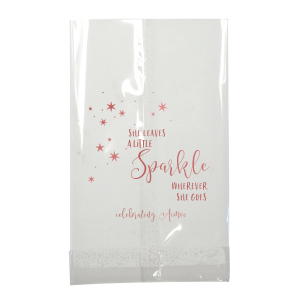 Zoom Show guides Loading product She Leaves A Little Sparkle Bag Popcorn Bag Design ID: 953327 Click on swatch to see options Choose Your Product Color Active Color Bag Colors Bag Colors Kraft Brown Black White Yellow Lime Purple Red Choose Your Imprint Foil Color Active Color Shiny Foil Shiny Foil Metallic, lustrous finish. *Specialty patterned foil may vary on final print Shiny Champagne Shiny Sterling Silver Shiny 18 Kt Gold Shiny Kiwi / Lime Shiny Leaf Shiny Spruce Shiny Jade Shiny Royal Blue Shiny Amethyst Shiny Fuchsia Shiny Rose Quartz Shiny Rose Gold NEW Shiny Merlot Shiny Convertible Red Shiny Poppy Shiny Copper *Shiny Holographic Gold *Shiny Holographic Silver *Shiny Rainbow Matte Foil Matte Foil Flat finish. Matte NEW Chocolate Matte Black Matte Slate Gray Matte Dove Grey Matte White Matte Ivory Matte Mimosa Yellow Matte Sunflower Matte Key Lime Matte Leaf Matte Teal/Peacock Matte Azure Matte Royal Blue Matte Navy Matte Amethyst Matte Pastel Pink Matte Ballet Pink Matte Fuchsia Matte Lipstick Red Matte Merlot Matte Tangerine Satin Foil Satin Foil Muted sheen, brushed finish. Satin Sterling Silver Satin 18 Kt. Gold Satin Copper Penny Satin Fuchsia Satin Lipstick Red Satin Leaf Satin Teal / Peacock Satin French Blue Satin Plum Choose Your Tissue Color Active Color Tissue Paper Tissue Paper Turquoise 10 sheets Royal Blue 10 sheets Pink 8 sheets Red 8 sheets None Brown 10 sheets Out Until: 2025-12-01 Black 10 sheets Out Until: 2025-12-01 Ivory 10 sheets Out Until: 2025-12-01 Light Blue 10 sheets Out Until: 2025-12-01 Lavender 10 sheets Out Until: 2026-02-13 Fuchsia 10 sheets Out Until: 2025-12-01 Personalize Your Text Line 1 Personalize further with different fonts, graphics, positioning, and sizes. (Optional) Customize More Choose Your Quantity Subtotal PRICE INCLUDES: Select a Proof Option: Print As Is I confirm that I have reviewed my design and I understand it will be produced as shown and no proof will be provided. Digital Proof + $15 I would like an expert FYP designer to look at my design, make minor corrections if necessary, and send me a black and white proof before the order is produced. Orders delivered as soon as 05.07.2026. Exclusions apply. Share Your Design About This Design The ever-popular Ivory Goodie Bag with Shiny Rose Quartz Foil has a Starry Night graphic and is good for use in Birthday, Celebration and Stars themed parties and can't be beat. Showcase your style in every detail of your party's theme! Product Details Product Details Minimum order of 25 Measures 4.25" wide by 8" high by 2.25" deep Gusseted design Bulk discounts available Expedited shipping options availa Product Description Product Description Our Personalized Popcorn Bags are the perfect way to serve up smiles at your next gathering! Elevate your event with these customized bags, adding a personal touch that delights guests and makes every moment memorable. Whether it's a movie night, wedding, or carnival-themed celebration, these popcorn bags are a fantastic addition to the fun. Crafted with impeccable quality, our Personalized Popcorn Bags offer a delightful texture and durability that ensures they hold up to every kernel. Their convenient design makes them easy to carry and share, adding an extra layer of enjoyment to your festivities. Choose from a variety of vibrant colors and designs to perfectly match your event's theme. Elevate your event with our Personalized Popcorn Bags – a tasteful way to make your party pop! Explore our other favor bags. Product Options Popcorn Bag Gloss Goodie Bag Large Cellophane Bag Small Cellophane Bag Related Products Popcorn Bag Gloss Goodie Bag Large Cellophane Bag Small Cellophane Bag