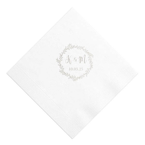 Zoom Show guides Loading product Simple Wreath Wedding Napkin Diamond Cocktail Napkin Design ID: 7550 Click on swatch to see options Choose Your Napkin Color Active Color 3 ply 3 ply Top quality 3 ply. Dyed tissue. Sand Black Slate Platinum Platinum Pin Dot Dove Gray Dove Gray Borderless White White Borderless White Pin Dot White Scallop Ivory Ivory Borderless Mimosa Lemon Pin Dot Kiwi Kiwi Pin Dot Leaf Pin Dot Spruce Pin Dot Olive Pin Dot Light Navy Dark Turquoise Pin Dot Turquoise Powder Blue Pin Dot Lavender Lavender Pin Dot Purple Merlot Pin Dot Fuchsia Candy Pink Antique Pink Pin Dot Ballet Pink Ballet Pink Borderless Convertible Red Light Coral Merlot Out Until: 2025-11-29 Tangerine Out Until: 2025-11-29 Linen Like* - Premium Product Linen Like* - Premium Product Absorbent. Dyed tissue. Airlaid. Premium pricing applies. Pebble Kraft Metallic Copper Ash Grey Black Charcoal Stone Gray Metallic Silver Fog White Ivory Cream Buttercream Metallic Gold Lemon Moss Green Hunter Green Pastel Green Lime Eucalyptus Dark Turquoise Bright Sky Powder Blue Navy Lavender Berry Merlot Magenta Pastel Pink Pink Lipstick Red Terracotta Peach Mango Brown Out Until: 2025-11-21 Olive Green Out Until: 2025-11-30 Plum Out Until: 2025-11-13 Crosshatch* - Premium Product Crosshatch* - Premium Product Absorbent. Printed tissue. Airlaid. Premium pricing applies. Crosshatch Black Crosshatch Gray Crosshatch Stone Crosshatch Violet Crosshatch Lipstick Red Crosshatch Key Lime Out Until: 2025-11-26 Crosshatch Green Out Until: 2025-11-29 Crosshatch Turquoise Out Until: 2025-11-30 Crosshatch Navy Out Until: 2025-11-24 Crosshatch Fuchsia Out Until: 2025-11-30 Woven* - Premium Product Woven* - Premium Product Basketweave texture. Single-sided color. Premium pricing applies. Woven Sand Woven Copper Woven Black Woven Slate Woven Silver Woven Stone Woven Vanilla Woven White Woven Gold Woven Sage Woven Spruce Woven Powder Blue Woven Navy Woven Mauve Woven Convertible Red Woven Tumeric Patterned* - Premium Product Patterned* - Premium Product Exclusive FYP patterns. Single-sided color. Pindot embossed edge. Product pricing applies. Oak Wood Walnut Wood Ebony Wood Ash Wood Birch Wood Marble Sand Marble Gray Marble Navy Marble Taupe Marble Blush Ombre Black Ombre Navy Ombre Robin’s Egg Blue Ombre Rose petal Ombre Coral Watercolor Sea Glass Watercolor Ocean Watercolor Nightfall Watercolor Sangria Watercolor Hibiscus Watercolor Rose Watercolor Sunrise Leaf Sand Leaf Fern Leaf Rain Leaf Rose Tie Dye Sunflower Tie Dye Leaf Tie Dye Turquoise Tie Dye Fuchsia Shimmer* - Premium Product Shimmer* - Premium Product Elegant European Stardream with iridescent finish. Single-sided color. Pindot embossed edge. Premium pricing applies. Champagne Soft Black Galvanized Silver Crystal White Ivory Pearl Gold Sage Navy Amethyst Herringbone* - Premium Product Herringbone* - Premium Product Absorbent. Printed Herringbone pattern. Airlaid. Premium pricing applies. Herringbone Vanilla Mocha Herringbone Gray Onyx Choose Your Imprint Foil Color Active Color Shiny Foil Shiny Foil Metallic, lustrous finish. *Specialty patterned foil may vary on final print Shiny Champagne Shiny Sterling Silver Shiny 18 Kt Gold Shiny Kiwi / Lime Shiny Leaf Shiny Jade Shiny Royal Blue Shiny Amethyst Shiny Fuchsia Shiny Rose Quartz Shiny Rose Gold NEW Shiny Merlot Shiny Convertible Red Shiny Poppy Shiny Copper *Shiny Holographic Gold *Shiny Holographic Silver *Shiny Rainbow Matte Foil Matte Foil Flat finish. Matte NEW Chocolate Matte Black Matte Slate Gray Matte Dove Grey Matte White Matte Ivory Matte Mimosa Yellow Matte Sunflower Matte Key Lime Matte Leaf Matte Spruce Matte Teal/Peacock Matte Azure Matte Royal Blue Matte Navy Matte Amethyst Matte Pastel Pink Matte Ballet Pink Matte Fuchsia Matte Lipstick Red Matte Merlot Matte Tangerine Satin Foil Satin Foil Muted sheen, brushed finish. Satin Sterling Silver Satin 18 Kt. Gold Satin Copper Penny Satin Fuchsia Satin Lipstick Red Satin Leaf Satin Teal / Peacock Satin French Blue Satin Plum Personalize Your Text Line 1 Line 2 Line 3 Personalize further with different fonts, graphics, positioning, and sizes. (Optional) Customize More Choose Your Quantity Subtotal PRICE INCLUDES: Select a Proof Option: Print As Is I confirm that I have reviewed my design and I understand it will be produced as shown and no proof will be provided. Digital Proof + $15 I would like an expert FYP designer to look at my design, make minor corrections if necessary, and send me a black and white proof before the order is produced. Orders delivered as soon as 11.05.2025. Exclusions apply. Share Your Design About This Design Encapsulate matrimonial elegance with the Simple Wreath Wedding Napkin, where a delicate leaf wreath tenderly encircles the couple's initials and special date. This design exudes a quiet grace, perfect for complementing the refined ambiance of your wedding day. Product Details Product Details Classic 3-ply tissue, 4.75” or 5” square Colors vary Signature foil stamp included Bulk discounts available Expedited shipping options available. Product Description Product Description Classic Cocktail Napkins are the perfect companion for any event. Add a touch of refinement to your cocktail parties, weddings, or birthday celebrations. Whether you're sipping a Martini, Old Fashioned, or a signature cocktail, these beverage napkins are the perfect accompaniment to elevate your drink service to new heights.Traditionally designed with a classic pleated edge, highly absorbent, durable, crafted from high-quality, premium-grade paper, our Classic Cocktail Napkins are an excellent, timeless choice. They are soft to the touch, keeping your guests' hands dry and your furniture protected. Once used, simply discard them, making cleanup a breeze. Explore our Cocktail Napkins Collection to find the perfect option for your event. Due to the complexities of manufacturing, the size of the embossed border on our 3-ply napkins may vary slightly. These dis