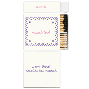 Light a spark that will last a lifetime with the Star of David Frame Photo Matchbox! This matchbox features a scalloped frame and Stars of David design on the front with a joyous "Mazel Tov!", while the back features a personal message. Customize the text to make it your own for your next momentous occasion.