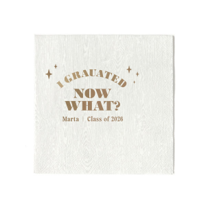 Zoom Show guides Loading product Starry Future Grad Napkin Square Cocktail Napkin Design ID: 2796439 Click on swatch to see options Choose Your Product Color Active Color 3 ply 3 ply Top quality 3 ply. Dyed tissue. Sand Black Slate Platinum Pin Dot Dove Gray Dove Gray Borderless White White Borderless White Pin Dot White Scallop Ivory Ivory Borderless Kiwi Pin Dot Leaf Pin Dot Spruce Pin Dot Olive Pin Dot Dark Navy Pin Dot Light Navy Dark Turquoise Pin Dot Turquoise Powder Blue Pin Dot Lavender Pin Dot Merlot Pin Dot Antique Pink Pin Dot Ballet Pink Ballet Pink Borderless Convertible Red Light Coral Tangerine Pin Dot Platinum Out Until: 2026-05-20 Mimosa Out Until: 2026-05-23 Lemon Pin Dot Out Until: 2026-05-13 Kiwi Out Until: 2026-05-20 Lavender Out Until: 2026-04-17 Merlot Out Until: 2026-05-13 Fuchsia Out Until: 2026-05-27 Linen Like* - Premium Product Linen Like* - Premium Product Absorbent. Dyed tissue. Airlaid. Premium pricing applies. Pebble Kraft Metallic Copper Ash Grey Brown Black Stone Gray Metallic Silver Fog White Ivory Cream Metallic Gold Olive Green Hunter Green Pastel Green Lime Eucalyptus Dark Turquoise Bright Sky Powder Blue Navy Lavender Magenta Pink Pastel Pink Lipstick Red Terracotta Peach Mango Charcoal Out Until: 2026-05-23 Buttercream Out Until: 2026-05-24 Lemon Out Until: 2026-05-19 Moss Green Out Until: 2026-05-28 Berry Out Until: 2026-05-15 Merlot Crosshatch* - Premium Product Crosshatch* - Premium Product Absorbent. Printed tissue. Airlaid. Premium pricing applies. Crosshatch Black Crosshatch Gray Crosshatch Stone Crosshatch Key Lime Crosshatch Green Crosshatch Turquoise Crosshatch Navy Crosshatch Violet Crosshatch Fuchsia Crosshatch Lipstick Red Woven* - Premium Product Woven* - Premium Product Basketweave texture. Single-sided color. Premium pricing applies. Woven Sand Woven Copper Woven Black Woven Slate Woven Silver Woven Stone Woven Vanilla Woven White Woven Gold Woven Sage Woven Spruce Woven Powder Blue Woven Navy Woven Mauve Woven Convertible Red Woven Tumeric Patterned* - Premium Product Patterned* - Premium Product Exclusive FYP patterns. Single-sided color. Pindot embossed edge. Product pricing applies. Oak Wood Walnut Wood Ebony Wood Ash Wood Birch Wood Marble Sand Marble Gray Marble Navy Marble Taupe Marble Blush Ombre Black Ombre Navy Ombre Robin’s Egg Blue Ombre Rose Petal Ombre Coral Watercolor Sea Glass Watercolor Ocean Watercolor Nightfall Watercolor Sangria Watercolor Hibiscus Watercolor Rose Watercolor Sunrise Leaf Sand Leaf Fern Leaf Rain Leaf Rose Tie Dye Sunflower Tie Dye Leaf Tie Dye Turquoise Tie Dye Fuchsia Shimmer* - Premium Product Shimmer* - Premium Product Elegant European Stardream with iridescent finish. Single-sided color. Pindot embossed edge. Premium pricing applies. Champagne Soft Black Galvanized Silver Crystal White Ivory Pearl Gold Sage Navy Amethyst Out Until: 2026-05-22 Herringbone* - Premium Product Herringbone* - Premium Product Absorbent. Printed Herringbone pattern. Airlaid. Premium pricing applies. Herringbone Gray Onyx Herringbone Vanilla Mocha Out Until: 2026-05-22 Choose Your Imprint Foil Color Active Color Shiny Foil Shiny Foil Metallic, lustrous finish. *Specialty patterned foil may vary on final print Shiny Champagne Shiny Sterling Silver Shiny 18 Kt Gold Shiny Kiwi / Lime Shiny Leaf Shiny Spruce Shiny Jade Shiny Royal Blue Shiny Amethyst Shiny Fuchsia Shiny Rose Quartz Shiny Rose Gold NEW Shiny Merlot Shiny Convertible Red Shiny Poppy Shiny Copper *Shiny Holographic Gold *Shiny Holographic Silver *Shiny Rainbow Matte Foil Matte Foil Flat finish. Matte NEW Chocolate Matte Black Matte Slate Gray Matte Dove Grey Matte White Matte Ivory Matte Mimosa Yellow Matte Sunflower Matte Key Lime Matte Leaf Matte Teal/Peacock Matte Azure Matte Royal Blue Matte Navy Matte Amethyst Matte Pastel Pink Matte Ballet Pink Matte Fuchsia Matte Lipstick Red Matte Merlot Matte Tangerine Satin Foil Satin Foil Muted sheen, brushed finish. Satin Sterling Silver Satin 18 Kt. Gold Satin Copper Penny Satin Fuchsia Satin Lipstick Red Satin Leaf Satin Teal / Peacock Satin French Blue Satin Plum Personalize Your Text Line 1 Line 2 Line 3 Line 4 Personalize further with different fonts, graphics, positioning, and sizes. (Optional) Customize More Choose Your Quantity Subtotal PRICE INCLUDES: Select a Proof Option: Print As Is I confirm that I have reviewed my design and I understand it will be produced as shown and no proof will be provided. Digital Proof + $15 I would like an expert FYP designer to look at my design, make minor corrections if necessary, and send me a black and white proof before the order is produced. Orders delivered as soon as 05.12.2026. Exclusions apply. Share Your Design About This Design Ponder the possibilities with the Starry Future Grad Napkin, sprinkled with star graphics and the thought-provoking "I graduated, now what?" Personalize with the graduate's name and year to add a touch of humor and hope to the celebration. Product Details Product Details Classic 3-ply tissue, 4.75” or 5” square Colors vary Signature foil stamp included Bulk discounts available Expedited shipping options available. Product Description Product Description Classic Cocktail Napkins are the perfect companion for any event. Add a touch of refinement to your cocktail parties, weddings, or birthday celebrations. Whether you're sipping a Martini, Old Fashioned, or a signature cocktail, these beverage napkins are the perfect accompaniment to elevate your drink service to new heights.Traditionally designed with a classic pleated edge, highly absorbent, durable, crafted from high-quality, premium-grade paper, our Classic Cocktail Napkins are an excellent, timeless choice. They are soft to the touch, keeping your guests' hands dry and your furniture protected. Once used, simply discard them, making cleanup a breeze. Explore our Cocktail Napkins Collection to find the perfect option for your event. Due to the complexities of manufacturing, the s