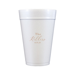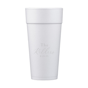 Zoom Show guides Loading product Surname Script Cup 12-oz. Styrofoam Cup Design ID: 1051216 Click on swatch to see options Choose Your Screen Print Active Color Matte Cup Ink Matte Cup Ink Matte Black Ink Matte Slate Gray Ink Matte Moss Green Ink Matte Leaf Ink Matte Spruce Matte Sky Blue Ink Matte Royal Blue Ink Matte Navy Ink Matte Cobalt Ink Matte Ballet Pink Ink Matte Fuchsia Ink Matte Lipstick Red Ink Matte Merlot Ink Metallic Cup Ink Metallic Cup Ink Silver Ink Gold Ink Copper Ink Personalize Your Text Line 1 Line 2 Personalize further with different fonts, graphics, positioning, and sizes. (Optional) Customize More Choose Your Quantity Subtotal PRICE INCLUDES: Select a Proof Option: Print As Is I confirm that I have reviewed my design and I understand it will be produced as shown and no proof will be provided. Digital Proof + $15 I would like an expert FYP designer to look at my design, make minor corrections if necessary, and send me a black and white proof before the order is produced. Orders delivered as soon as 11.07.2025. Exclusions apply. Share Your Design About This Design Exuding charm, the Surname Script Cup highlights the couple's shared surname in a bold, contemporary script. This design, focused on the last name with the event date subtly included, beautifully commemorates the unity celebrated on their wedding day. Product Details Product Details Minimum order of 50 Measures 4.5" tall and 3.5" wide at the top Ideal for coffee and tea Recyclable Bulk discounts available Expedited shipping options available. Product Description Product Description Want the customization of our custom cups, but easier clean-up? Our styrofoam cups are the answer. Custom printed cups are great for your bachelorette party, or any time where you’re on the go and can’t stop to clean! Like their frost flex siblings, these are a compact 12 oz. package that can be customized with your art. Recyclable styrofoam is great for convenience and versatility—these cups can serve up hot or cold drinks, and no washing needed. Try them for coffee or mixed drinks at your next party! Product Options 12-oz. Styrofoam Cup 16-oz. Styrofoam Cup 20-oz. Styrofoam Cup 24-oz. Styrofoam Cup 32-oz. Styrofoam Cup Related Products 12-oz. Styrofoam Cup 16-oz. Styrofoam Cup 20-oz. Styrofoam Cup 24-oz. Styrofoam Cup 32-oz. Styrofoam Cup