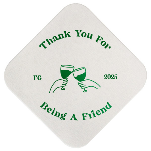 Zoom Show guides Loading product Thank You For Being A Friend Coaster Round Coaster Design ID: 3059351 Click on swatch to see options Choose Your Product Color Active Color Coaster Colors Coaster Colors Black White Eggshell Choose Your Imprint Foil Color Active Color Shiny Foil Shiny Foil Metallic, lustrous finish. *Specialty patterned foil may vary on final print Shiny Champagne Shiny Sterling Silver Shiny 18 Kt Gold Shiny Kiwi / Lime Shiny Leaf Shiny Jade Shiny Royal Blue Shiny Amethyst Shiny Fuchsia Shiny Rose Quartz Shiny Rose Gold NEW Shiny Merlot Shiny Convertible Red Shiny Poppy Shiny Copper *Shiny Holographic Gold *Shiny Holographic Silver *Shiny Rainbow Matte Foil Matte Foil Flat finish. Matte NEW Chocolate Matte Black Matte Slate Gray Matte Dove Grey Matte White Matte Ivory Matte Mimosa Yellow Matte Sunflower Matte Key Lime Matte Leaf Matte Spruce Matte Teal/Peacock Matte Azure Matte Royal Blue Matte Navy Matte Amethyst Matte Pastel Pink Matte Ballet Pink Matte Fuchsia Matte Lipstick Red Matte Merlot Matte Tangerine Satin Foil Satin Foil Muted sheen, brushed finish. Satin Sterling Silver Satin 18 Kt. Gold Satin Copper Penny Satin Fuchsia Satin Lipstick Red Satin Leaf Satin Teal / Peacock Satin French Blue Satin Plum Personalize Your Text Line 1 Line 2 Personalize further with different fonts, graphics, positioning, and sizes. (Optional) Customize More Choose Your Quantity Subtotal PRICE INCLUDES: Select a Proof Option: Print As Is I confirm that I have reviewed my design and I understand it will be produced as shown and no proof will be provided. Digital Proof + $15 I would like an expert FYP designer to look at my design, make minor corrections if necessary, and send me a black and white proof before the order is produced. Orders delivered as soon as 11.07.2025. Exclusions apply. Share Your Design About This Design Coast on good graces this year with the Thank You For Being A Friend Coaster. Friends and family alike will feel the significance of the season with the customizable drink ware that adds a stylish personalization to your party decor. Product Details Product Details Minimum order of 50 Measures 4" in diameter Made from reusable uncoated pulp board Bulk discounts available Expedited shipping options available. Product Description Product Description Our stylish Round Coasters are the must-have choice to elevate your event's decor and protect your surfaces with flair. These customizable coasters are the perfect addition to weddings, cocktail parties, corporate events, and more. They not only safeguard your furniture but also serve as stylish accessories that leave a lasting impression on your guests. Crafted from uncoated pulp board, our Round Coasters boast premium quality, featuring a smooth texture that adds a touch of sophistication to your event. These durable coasters are designed for convenience, easily accommodating glasses and mugs of all sizes. Customize these coasters with your unique design or event details, making them a memorable keepsake for your guests. Explore our other barware. Product Options Round Coaster Square Coaster Diamond 4" Coaster Nouveau Deco Hexagon Coaster Related Products Round Coaster Square Coaster Diamond 4" Coaster Nouveau Deco Hexagon Coaster Material Pulp Board