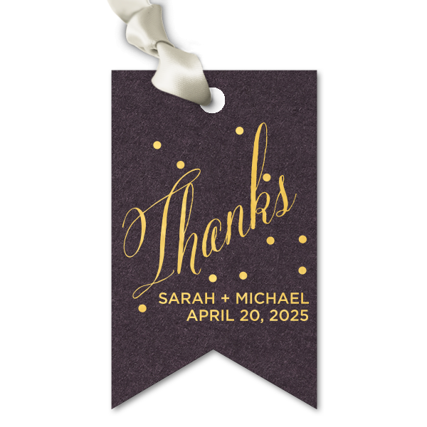 Zoom Show guides Loading product Thanks Bubble Tag Luggage Tag Design ID: 402525 Click on swatch to see options Choose Your Paper Color Active Color Linen Linen Slightly textured, matte finish. Double-sided color. 100lb+ cover stock. Linen Convertible Red Linen Black Linen Slate Linen Antique Gray Linen White Linen Eggshell Linen Ivory Linen Pearl Cream Linen Navy Blue Shiny Shiny Smooth, high-gloss finish. Single-sided color. 100lb+ cover stock. Shiny Black Shiny White Shiny Navy Blue Shiny Fuchsia Shiny Convertible Red Stardream Stardream European Stardream with iridescent finish. Double-sided color. 105lb+ cover stock. Stardream NEW Black Stardream Galvanized Silver Stardream Silver Stardream Crystal White Stardream Ivory Stardream 18k Gold Stardream Champagne Stardream Old Gold Stardream Super Gold Stardream Orange Stardream Rose Gold Stardream Blush Stardream Ballet Pink Stardream Plum Stardream Violet Stardream Lavender Stardream Denim Stardream NEW Peacock Stardream Robin's Egg Blue Poptone Poptone Soft felt texture with matte finish. Double-sided color. 100lb+ cover stock. Poptone Ballet Pink Poptone NEW Fuchsia Poptone Convertible Red Poptone Tangerine Poptone Sunflower Poptone Yellow Poptone Mimosa Poptone Mint Poptone Robin’s Egg Blue Poptone Dark Turquoise Poptone Sky Blue Poptone NEW French Blue Poptone Lavender Natural Natural Smooth, matte finish. Double-sided color. 100lb+ cover stock. Natural NEW Sand Natural Khaki Natural NEW Kraft Natural Mushroom Natural NEW Chocolate Natural Black Natural Slate Natural Gray Natural Smoke Natural NEW Frost White Natural Ivory Natural Leaf Natural Spruce Natural Olive Natural Dark Teal Natural NEW Amethyst Natural Scarlet Natural Antique Rose Natural Harvest Natural Dark Sage Textured Textured Variety of textures. Single-sided color. 110lb+ cover stock. Oak Wood Walnut Wood Ebony Wood Ash Wood Birch Wood Leather Like Tan Leather Like Black Leather Like Pearl Leather Like White Leather Like Night Blue Leather Like Lipstick Red Horizontal White Patterned* - Premium Product Patterned* - Premium Product Smooth, matte finish. Single-sided pattern with white back. Pattern and color may vary between products. 100 lb paper. Premium pricing applies. Marble Sand Marble Gray Marble Navy Marble Taupe Marble Blush Watercolor Seaglass Watercolor Ocean Watercolor Night Fall Watercolor Sangria Watercolor Hibiscus Watercolor Rose Watercolor Sunrise Leaf Sand Leaf Fern Leaf Rain Leaf Rose Blank Stock Blank Stock Blank Stock Glitter* - Premium Product Glitter* - Premium Product Sparkly with a slightly textured finish. Single-sided with a white back and 100lb+ cover stock. Premium pricing applies. Glitter NEW Black Glitter NEW Silver Glitter Champagne Glitter Rose Copper Glitter Night Fall Choose Your Imprint Foil Color Active Color Shiny Foil Shiny Foil Metallic, lustrous finish. *Specialty patterned foil may vary on final print Shiny Champagne Shiny Sterling Silver Shiny 18 Kt Gold Shiny Kiwi / Lime Shiny Leaf Shiny Jade Shiny Royal Blue Shiny Amethyst Shiny Fuchsia Shiny Rose Quartz Shiny Rose Gold NEW Shiny Merlot Shiny Convertible Red Shiny Poppy Shiny Copper *Shiny Holographic Gold *Shiny Holographic Silver *Shiny Rainbow Matte Foil Matte Foil Flat finish. Matte NEW Chocolate Matte Black Matte Slate Gray Matte Dove Grey Matte White Matte Ivory Matte Mimosa Yellow Matte Sunflower Matte Key Lime Matte Leaf Matte Spruce Matte Teal/Peacock Matte Azure Matte Royal Blue Matte Navy Matte Amethyst Matte Pastel Pink Matte Ballet Pink Matte Fuchsia Matte Lipstick Red Matte Merlot Matte Tangerine Satin Foil Satin Foil Muted sheen, brushed finish. Satin Sterling Silver Satin 18 Kt. Gold Satin Copper Penny Satin Fuchsia Satin Lipstick Red Satin Leaf Satin Teal / Peacock Satin French Blue Satin Plum Choose Your Ribbon Color Active Color Ribbons - Additional Charge Ribbons - Additional Charge Copper Espresso Black Slate Sterling Silver White Ivory Pearl Gold Mimosa Kiwi Forest Olive Pistachio Green Tea Peacock Robin’s Egg Blue Turquoise Dark Turquoise Navy Royal Blue Glacier Blue Sky Blue Lavender Violet Amethyst Cranberry Merlot Plum Candy Pink Ballet Pink Rose Petal Brick Convertible Red None Champagne Out Until: 2025-12-26 Brownie Out Until: 2025-12-18 Sunflower Out Until: 2025-12-21 Gold Out Until: 2025-12-07 Leaf Out Until: 2025-12-24 Fuchsia Out Until: 2025-12-05 Tangerine Out Until: 2025-12-05 Coral Out Until: 2025-12-05 Personalize Your Text Line 1 Line 2 Personalize further with different fonts, graphics, positioning, and sizes. (Optional) Customize More Choose Your Quantity Subtotal PRICE INCLUDES: Select a Proof Option: Print As Is I confirm that I have reviewed my design and I understand it will be produced as shown and no proof will be provided. Digital Proof + $15 I would like an expert FYP designer to look at my design, make minor corrections if necessary, and send me a black and white proof before the order is produced. Orders delivered as soon as 12.11.2025. Exclusions apply. Share Your Design About This Design Our custom Natural Amethyst Luggage Gift Tag with Shiny 18 Kt Gold Foil can be personalized to match your party's exact theme and tempo. Product Details Product Details Minimum order of 25 Measures 2.5" wide by 4.125" high Bulk discounts available Expedited shipping options available. Product Description Product Description Personalized luggage gift tags are a wonderful addition to any event, whether it be a wedding, party, or corporate gathering. These gift tags are a stylish and creative way to express gratitude to your guests and add a cohesive touch to your event's décor. Tags come with a hole punched in the paper for easy attachment of ribbon or twine. Double-sided bridal satin ribbon in an array of coordinating colors is also available for purchase. Assembly is required. Choose from a variety of foil colors and methods to create a gift tag that perfectly matches your event's theme and color scheme. Product Options Luggage Tag Rou