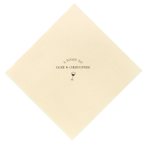 Zoom Show guides Loading product A Toast To Wine Glass Napkin Diamond Cocktail Napkin Design ID: 2794525 Click on swatch to see options Choose Your Napkin Color Active Color 3 ply 3 ply Top quality 3 ply. Dyed tissue. Sand Black Slate Platinum Pin Dot Dove Gray Dove Gray Borderless White White Borderless White Pin Dot White Scallop Ivory Ivory Borderless Kiwi Pin Dot Leaf Pin Dot Spruce Pin Dot Olive Pin Dot Dark Navy Pin Dot Light Navy Dark Turquoise Pin Dot Turquoise Powder Blue Pin Dot Lavender Pin Dot Merlot Pin Dot Antique Pink Pin Dot Ballet Pink Ballet Pink Borderless Convertible Red Light Coral Tangerine Pin Dot Platinum Out Until: 2026-05-20 Mimosa Out Until: 2026-05-23 Lemon Pin Dot Out Until: 2026-05-13 Kiwi Out Until: 2026-05-20 Lavender Out Until: 2026-04-17 Merlot Out Until: 2026-05-13 Fuchsia Out Until: 2026-05-27 Linen Like* - Premium Product Linen Like* - Premium Product Absorbent. Dyed tissue. Airlaid. Premium pricing applies. Pebble Kraft Metallic Copper Ash Grey Brown Black Stone Gray Metallic Silver Fog White Ivory Cream Metallic Gold Olive Green Hunter Green Pastel Green Lime Eucalyptus Dark Turquoise Out Until: 2026-05-01 Bright Sky Powder Blue Navy Lavender Magenta Pastel Pink Pink Lipstick Red Terracotta Peach Mango Charcoal Out Until: 2026-05-23 Buttercream Out Until: 2026-05-24 Lemon Out Until: 2026-05-19 Moss Green Out Until: 2026-05-28 Berry Out Until: 2026-05-15 Merlot Crosshatch* - Premium Product Crosshatch* - Premium Product Absorbent. Printed tissue. Airlaid. Premium pricing applies. Crosshatch Black Crosshatch Gray Crosshatch Stone Crosshatch Key Lime Crosshatch Green Crosshatch Turquoise Crosshatch Navy Crosshatch Violet Crosshatch Fuchsia Crosshatch Lipstick Red Woven* - Premium Product Woven* - Premium Product Basketweave texture. Single-sided color. Premium pricing applies. Woven Sand Woven Copper Woven Black Woven Slate Woven Silver Woven Stone Woven Vanilla Woven White Woven Gold Woven Sage Woven Spruce Woven Powder Blue Woven Navy Woven Mauve Woven Convertible Red Woven Tumeric Patterned* - Premium Product Patterned* - Premium Product Exclusive FYP patterns. Single-sided color. Pindot embossed edge. Product pricing applies. Oak Wood Walnut Wood Ebony Wood Ash Wood Birch Wood Marble Sand Marble Gray Marble Navy Marble Taupe Marble Blush Ombre Black Ombre Navy Ombre Robin’s Egg Blue Ombre Rose petal Ombre Coral Watercolor Sea Glass Watercolor Ocean Watercolor Nightfall Watercolor Sangria Watercolor Hibiscus Watercolor Rose Watercolor Sunrise Leaf Sand Leaf Fern Leaf Rain Leaf Rose Tie Dye Sunflower Tie Dye Leaf Tie Dye Turquoise Tie Dye Fuchsia Shimmer* - Premium Product Shimmer* - Premium Product Elegant European Stardream with iridescent finish. Single-sided color. Pindot embossed edge. Premium pricing applies. Champagne Soft Black Galvanized Silver Crystal White Ivory Pearl Gold Sage Navy Amethyst Out Until: 2026-05-22 Herringbone* - Premium Product Herringbone* - Premium Product Absorbent. Printed Herringbone pattern. Airlaid. Premium pricing applies. Herringbone Gray Onyx Herringbone Vanilla Mocha Out Until: 2026-05-22 Choose Your Imprint Foil Color Active Color Shiny Foil Shiny Foil Metallic, lustrous finish. *Specialty patterned foil may vary on final print Shiny Champagne Shiny Sterling Silver Shiny 18 Kt Gold Shiny Kiwi / Lime Shiny Leaf Shiny Spruce Shiny Jade Shiny Royal Blue Shiny Amethyst Shiny Fuchsia Shiny Rose Quartz Shiny Rose Gold NEW Shiny Merlot Shiny Convertible Red Shiny Poppy Shiny Copper *Shiny Holographic Gold *Shiny Holographic Silver *Shiny Rainbow Matte Foil Matte Foil Flat finish. Matte NEW Chocolate Matte Black Matte Slate Gray Matte Dove Grey Matte White Matte Ivory Matte Mimosa Yellow Matte Sunflower Matte Key Lime Matte Leaf Matte Teal/Peacock Matte Azure Matte Royal Blue Matte Navy Matte Amethyst Matte Pastel Pink Matte Ballet Pink Matte Fuchsia Matte Lipstick Red Matte Merlot Matte Tangerine Satin Foil Satin Foil Muted sheen, brushed finish. Satin Sterling Silver Satin 18 Kt. Gold Satin Copper Penny Satin Fuchsia Satin Lipstick Red Satin Leaf Satin Teal / Peacock Satin French Blue Satin Plum Personalize Your Text Line 1 Line 2 Personalize further with different fonts, graphics, positioning, and sizes. (Optional) Customize More Choose Your Quantity Subtotal PRICE INCLUDES: Select a Proof Option: Print As Is I confirm that I have reviewed my design and I understand it will be produced as shown and no proof will be provided. Digital Proof + $15 I would like an expert FYP designer to look at my design, make minor corrections if necessary, and send me a black and white proof before the order is produced. Orders delivered as soon as 05.12.2026. Exclusions apply. Share Your Design About This Design Raise your glasses with the A Toast To Wine Glass Napkin, featuring the phrase "A Toast to" arched gracefully above the couple's names, and a chic single line drawing of a wine glass below. Perfect for adding a bespoke touch to your wedding or rehearsal dinner. Product Details Product Details Classic 3-ply tissue, 4.75” or 5” square Colors vary Signature foil stamp included Bulk discounts available Expedited shipping options available. Product Description Product Description Classic Cocktail Napkins are the perfect companion for any event. Add a touch of refinement to your cocktail parties, weddings, or birthday celebrations. Whether you're sipping a Martini, Old Fashioned, or a signature cocktail, these beverage napkins are the perfect accompaniment to elevate your drink service to new heights.Traditionally designed with a classic pleated edge, highly absorbent, durable, crafted from high-quality, premium-grade paper, our Classic Cocktail Napkins are an excellent, timeless choice. They are soft to the touch, keeping your guests' hands dry and your furniture protected. Once used, simply discard them, making cleanup a breeze. Explore our Cocktail Napkins Collection to find the perfect option for your event. Due to the com