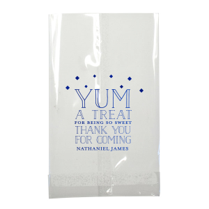 Zoom Show guides Loading product Treat Favor Bag Cookie Bag Design ID: 2384 Click on swatch to see options Choose Your Product Color Active Color Bag Colors Bag Colors Kraft Black White Hot Pink Choose Your Imprint Foil Color Active Color Shiny Foil Shiny Foil Metallic, lustrous finish. *Specialty patterned foil may vary on final print Shiny Champagne Shiny Sterling Silver Shiny 18 Kt Gold Shiny Kiwi / Lime Shiny Leaf Shiny Spruce Shiny Jade Shiny Royal Blue Shiny Amethyst Shiny Fuchsia Shiny Rose Quartz Shiny Rose Gold NEW Shiny Merlot Shiny Convertible Red Shiny Poppy Shiny Copper *Shiny Holographic Gold *Shiny Holographic Silver *Shiny Rainbow Matte Foil Matte Foil Flat finish. Matte NEW Chocolate Matte Black Matte Slate Gray Matte Dove Grey Matte White Matte Ivory Matte Mimosa Yellow Matte Sunflower Matte Key Lime Matte Leaf Matte Teal/Peacock Matte Azure Matte Royal Blue Matte Navy Matte Amethyst Matte Pastel Pink Matte Ballet Pink Matte Fuchsia Matte Lipstick Red Matte Merlot Matte Tangerine Satin Foil Satin Foil Muted sheen, brushed finish. Satin Sterling Silver Satin 18 Kt. Gold Satin Copper Penny Satin Fuchsia Satin Lipstick Red Satin Leaf Satin Teal / Peacock Satin French Blue Satin Plum Choose Your Tissue Color Active Color Tissue Paper Tissue Paper Turquoise 10 sheets Royal Blue 10 sheets Pink 8 sheets Red 8 sheets None Brown 10 sheets Out Until: 2025-12-01 Black 10 sheets Out Until: 2025-12-01 Ivory 10 sheets Out Until: 2025-12-01 Light Blue 10 sheets Out Until: 2025-12-01 Lavender 10 sheets Out Until: 2026-02-13 Fuchsia 10 sheets Out Until: 2025-12-01 Personalize Your Text Line 6 Personalize further with different fonts, graphics, positioning, and sizes. (Optional) Customize More Choose Your Quantity Subtotal PRICE INCLUDES: Select a Proof Option: Print As Is I confirm that I have reviewed my design and I understand it will be produced as shown and no proof will be provided. Digital Proof + $15 I would like an expert FYP designer to look at my design, make minor corrections if necessary, and send me a black and white proof before the order is produced. Orders delivered as soon as 05.01.2026. Exclusions apply. Share Your Design About This Design Pack a burst of gratitude with the Treat Favor Bag, where enthusiasm for your guests' presence is matched by the delight inside. The celebrant's name adds a personal touch to this effusive token of thanks. Product Details Product Details Minimum order of 25 Measures 5.75" wide by 8" high by under 1" deep Non-gusseted and wax-lined Bulk discounts available Expedited shipping options available. Product Description Product Description Send guests home with an extra sweet treat with our custom cookie bags. Elevate your baked goods presentation with these customizable bags, perfect for weddings, birthdays, and corporate events. Their versatility suits various occasions, making them an essential addition to your party supplies. Explore the range of design options on our website to find the perfect fit for your event's theme. Made from high quality paper, our cookie bags will be the star of your event. The durable texture ensures your treats stay fresh and secure, while the convenient design adds a touch of style to your packaging. Ideal for party favors or gifts, these bags offer a hassle-free solution for your event needs. Explore our other favor bags. Product Options Cookie Bag Popcorn Bag Gloss Goodie Bag Large Cellophane Bag Small Cellophane Bag Lunch Bag Related Products Cookie Bag Popcorn Bag Gloss Goodie Bag Large Cellophane Bag Small Cellophane Bag Lunch Bag