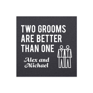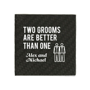 Zoom Show guides Loading product Two Grooms Wedding Napkin Square Cocktail Napkin Design ID: 706399 Click on swatch to see options Choose Your Product Color Active Color 3 ply 3 ply Top quality 3 ply. Dyed tissue. Sand Black Slate Platinum Platinum Pin Dot Dove Gray Dove Gray Borderless White White Borderless White Pin Dot White Scallop Ivory Ivory Borderless Mimosa Lemon Pin Dot Kiwi Kiwi Pin Dot Leaf Pin Dot Spruce Pin Dot Olive Pin Dot Light Navy Dark Turquoise Pin Dot Turquoise Powder Blue Pin Dot Lavender Lavender Pin Dot Purple Fuchsia Candy Pink Antique Pink Pin Dot Ballet Pink Ballet Pink Borderless Convertible Red Light Coral Merlot Out Until: 2025-11-06 Merlot Pin Dot Out Until: 2025-11-28 Tangerine Out Until: 2025-10-28 Linen Like* - Premium Product Linen Like* - Premium Product Absorbent. Dyed tissue. Airlaid. Premium pricing applies. Pebble Kraft Metallic Copper Ash Grey Black Charcoal Stone Gray Metallic Silver Fog White Ivory Cream Buttercream Metallic Gold Lemon Moss Green Olive Green Hunter Green Pastel Green Lime Eucalyptus Dark Turquoise Bright Sky Powder Blue Navy Lavender Berry Merlot Magenta Pink Pastel Pink Lipstick Red Terracotta Peach Mango Brown Out Until: 2025-11-21 Plum Out Until: 2025-11-13 Crosshatch* - Premium Product Crosshatch* - Premium Product Absorbent. Printed tissue. Airlaid. Premium pricing applies. Crosshatch Black Crosshatch Gray Crosshatch Stone Crosshatch Green Crosshatch Turquoise Crosshatch Violet Crosshatch Fuchsia Crosshatch Lipstick Red Crosshatch Key Lime Out Until: 2025-11-26 Crosshatch Navy Out Until: 2025-11-24 Woven* - Premium Product Woven* - Premium Product Basketweave texture. Single-sided color. Premium pricing applies. Woven Sand Woven Copper Woven Black Woven Slate Woven Silver Woven Stone Woven Vanilla Woven White Woven Gold Woven Sage Woven Spruce Woven Powder Blue Woven Navy Woven Mauve Woven Convertible Red Woven Tumeric Patterned* - Premium Product Patterned* - Premium Product Exclusive FYP patterns. Single-sided color. Pindot embossed edge. Product pricing applies. Oak Wood Walnut Wood Ebony Wood Ash Wood Birch Wood Marble Sand Marble Gray Marble Navy Marble Taupe Marble Blush Ombre Black Ombre Navy Ombre Robin’s Egg Blue Ombre Rose Petal Ombre Coral Watercolor Sea Glass Watercolor Ocean Watercolor Nightfall Watercolor Sangria Watercolor Hibiscus Watercolor Rose Watercolor Sunrise Leaf Sand Leaf Fern Leaf Rain Leaf Rose Tie Dye Sunflower Tie Dye Leaf Tie Dye Turquoise Tie Dye Fuchsia Shimmer* - Premium Product Shimmer* - Premium Product Elegant European Stardream with iridescent finish. Single-sided color. Pindot embossed edge. Premium pricing applies. Champagne Soft Black Galvanized Silver Crystal White Ivory Pearl Gold Sage Navy Amethyst Herringbone* - Premium Product Herringbone* - Premium Product Absorbent. Printed Herringbone pattern. Airlaid. Premium pricing applies. Herringbone Vanilla Mocha Herringbone Gray Onyx Choose Your Imprint Foil Color Active Color Shiny Foil Shiny Foil Metallic, lustrous finish. *Specialty patterned foil may vary on final print Shiny Champagne Shiny Sterling Silver Shiny 18 Kt Gold Shiny Kiwi / Lime Shiny Leaf Shiny Jade Shiny Royal Blue Shiny Amethyst Shiny Fuchsia Shiny Rose Quartz Shiny Rose Gold NEW Shiny Merlot Shiny Convertible Red Shiny Poppy Shiny Copper *Shiny Holographic Gold *Shiny Holographic Silver *Shiny Rainbow Matte Foil Matte Foil Flat finish. Matte NEW Chocolate Matte Black Matte Slate Gray Matte Dove Grey Matte White Matte Ivory Matte Mimosa Yellow Matte Sunflower Matte Key Lime Matte Leaf Matte Spruce Matte Teal/Peacock Matte Azure Matte Royal Blue Matte Navy Matte Amethyst Matte Pastel Pink Matte Ballet Pink Matte Fuchsia Matte Lipstick Red Matte Merlot Matte Tangerine Satin Foil Satin Foil Muted sheen, brushed finish. Satin Sterling Silver Satin 18 Kt. Gold Satin Copper Penny Satin Fuchsia Satin Lipstick Red Satin Leaf Satin Teal / Peacock Satin French Blue Satin Plum Personalize Your Text Line 1 Line 2 Personalize further with different fonts, graphics, positioning, and sizes. (Optional) Customize More Choose Your Quantity Subtotal PRICE INCLUDES: Select a Proof Option: Print As Is I confirm that I have reviewed my design and I understand it will be produced as shown and no proof will be provided. Digital Proof + $15 I would like an expert FYP designer to look at my design, make minor corrections if necessary, and send me a black and white proof before the order is produced. Orders delivered as soon as 11.04.2025. Exclusions apply. Share Your Design About This Design Our beautiful custom Black Cocktail Napkin with Matte White Foil has a Wedding Couple 3 graphic and is good for use in Wedding, Pairs themed parties and couldn't be more perfect. It's time to show off your impeccable taste. Product Details Product Details Classic 3-ply tissue, 4.75” or 5” square Colors vary Signature foil stamp included Bulk discounts available Expedited shipping options available. Product Description Product Description Classic Cocktail Napkins are the perfect companion for any event. Add a touch of refinement to your cocktail parties, weddings, or birthday celebrations. Whether you're sipping a Martini, Old Fashioned, or a signature cocktail, these beverage napkins are the perfect accompaniment to elevate your drink service to new heights.Traditionally designed with a classic pleated edge, highly absorbent, durable, crafted from high-quality, premium-grade paper, our Classic Cocktail Napkins are an excellent, timeless choice. They are soft to the touch, keeping your guests' hands dry and your furniture protected. Once used, simply discard them, making cleanup a breeze. Explore our Cocktail Napkins Collection to find the perfect option for your event. Due to the complexities of manufacturing, the size of the embossed border on our 3-ply napkins may vary slightly. These discrepancies are a natural part of the manufacturing process and do not impact the overall quality or functionalit