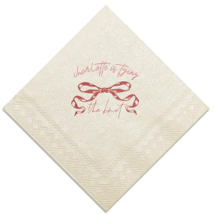 Zoom Show guides Loading product Tying the Knot Romance Napkin Diamond Cocktail Napkin Design ID: 2736433 Click on swatch to see options Choose Your Napkin Color Active Color 3 ply 3 ply Top quality 3 ply. Dyed tissue. Sand Black Slate Platinum Pin Dot Dove Gray Dove Gray Borderless White White Borderless White Pin Dot White Scallop Ivory Ivory Borderless Kiwi Pin Dot Leaf Pin Dot Spruce Pin Dot Olive Pin Dot Dark Navy Pin Dot Light Navy Dark Turquoise Pin Dot Turquoise Powder Blue Pin Dot Lavender Pin Dot Merlot Pin Dot Antique Pink Pin Dot Ballet Pink Ballet Pink Borderless Convertible Red Light Coral Tangerine Pin Dot Platinum Out Until: 2026-05-20 Mimosa Out Until: 2026-05-23 Lemon Pin Dot Out Until: 2026-05-13 Kiwi Out Until: 2026-05-20 Lavender Out Until: 2026-04-17 Merlot Out Until: 2026-05-13 Fuchsia Out Until: 2026-05-27 Linen Like* - Premium Product Linen Like* - Premium Product Absorbent. Dyed tissue. Airlaid. Premium pricing applies. Pebble Kraft Metallic Copper Ash Grey Brown Black Stone Gray Metallic Silver Fog White Ivory Cream Metallic Gold Olive Green Hunter Green Pastel Green Lime Eucalyptus Dark Turquoise Out Until: 2026-05-01 Bright Sky Powder Blue Navy Lavender Magenta Pastel Pink Pink Lipstick Red Terracotta Peach Mango Charcoal Out Until: 2026-05-23 Buttercream Out Until: 2026-05-24 Lemon Out Until: 2026-05-19 Moss Green Out Until: 2026-05-28 Berry Out Until: 2026-05-15 Merlot Crosshatch* - Premium Product Crosshatch* - Premium Product Absorbent. Printed tissue. Airlaid. Premium pricing applies. Crosshatch Black Crosshatch Gray Crosshatch Stone Crosshatch Key Lime Crosshatch Green Crosshatch Turquoise Crosshatch Navy Crosshatch Violet Crosshatch Fuchsia Crosshatch Lipstick Red Woven* - Premium Product Woven* - Premium Product Basketweave texture. Single-sided color. Premium pricing applies. Woven Sand Woven Copper Woven Black Woven Slate Woven Silver Woven Stone Woven Vanilla Woven White Woven Gold Woven Sage Woven Spruce Woven Powder Blue Woven Navy Woven Mauve Woven Convertible Red Woven Tumeric Patterned* - Premium Product Patterned* - Premium Product Exclusive FYP patterns. Single-sided color. Pindot embossed edge. Product pricing applies. Oak Wood Walnut Wood Ebony Wood Ash Wood Birch Wood Marble Sand Marble Gray Marble Navy Marble Taupe Marble Blush Ombre Black Ombre Navy Ombre Robin’s Egg Blue Ombre Rose petal Ombre Coral Watercolor Sea Glass Watercolor Ocean Watercolor Nightfall Watercolor Sangria Watercolor Hibiscus Watercolor Rose Watercolor Sunrise Leaf Sand Leaf Fern Leaf Rain Leaf Rose Tie Dye Sunflower Tie Dye Leaf Tie Dye Turquoise Tie Dye Fuchsia Shimmer* - Premium Product Shimmer* - Premium Product Elegant European Stardream with iridescent finish. Single-sided color. Pindot embossed edge. Premium pricing applies. Champagne Soft Black Galvanized Silver Crystal White Ivory Pearl Gold Sage Navy Amethyst Out Until: 2026-05-22 Herringbone* - Premium Product Herringbone* - Premium Product Absorbent. Printed Herringbone pattern. Airlaid. Premium pricing applies. Herringbone Gray Onyx Herringbone Vanilla Mocha Out Until: 2026-05-22 Choose Your Imprint Foil Color Active Color Shiny Foil Shiny Foil Metallic, lustrous finish. *Specialty patterned foil may vary on final print Shiny Champagne Shiny Sterling Silver Shiny 18 Kt Gold Shiny Kiwi / Lime Shiny Leaf Shiny Spruce Shiny Jade Shiny Royal Blue Shiny Amethyst Shiny Fuchsia Shiny Rose Quartz Shiny Rose Gold NEW Shiny Merlot Shiny Convertible Red Shiny Poppy Shiny Copper *Shiny Holographic Gold *Shiny Holographic Silver *Shiny Rainbow Matte Foil Matte Foil Flat finish. Matte NEW Chocolate Matte Black Matte Slate Gray Matte Dove Grey Matte White Matte Ivory Matte Mimosa Yellow Matte Sunflower Matte Key Lime Matte Leaf Matte Teal/Peacock Matte Azure Matte Royal Blue Matte Navy Matte Amethyst Matte Pastel Pink Matte Ballet Pink Matte Fuchsia Matte Lipstick Red Matte Merlot Matte Tangerine Satin Foil Satin Foil Muted sheen, brushed finish. Satin Sterling Silver Satin 18 Kt. Gold Satin Copper Penny Satin Fuchsia Satin Lipstick Red Satin Leaf Satin Teal / Peacock Satin French Blue Satin Plum Personalize Your Text Line 1 Line 2 Personalize further with different fonts, graphics, positioning, and sizes. (Optional) Customize More Choose Your Quantity Subtotal PRICE INCLUDES: Select a Proof Option: Print As Is I confirm that I have reviewed my design and I understand it will be produced as shown and no proof will be provided. Digital Proof + $15 I would like an expert FYP designer to look at my design, make minor corrections if necessary, and send me a black and white proof before the order is produced. Orders delivered as soon as 05.12.2026. Exclusions apply. Share Your Design About This Design Embrace the romance of your special day with the Tying the Knot Romance Napkin, personalized with your name and the loving phrase "is tying the knot," adorned with a romantic bow graphic. Ideal for adding an elegant, personalized touch to your wedding celebration or bachelorette party. Product Details Product Details Classic 3-ply tissue, 4.75” or 5” square Colors vary Signature foil stamp included Bulk discounts available Expedited shipping options available. Product Description Product Description Classic Cocktail Napkins are the perfect companion for any event. Add a touch of refinement to your cocktail parties, weddings, or birthday celebrations. Whether you're sipping a Martini, Old Fashioned, or a signature cocktail, these beverage napkins are the perfect accompaniment to elevate your drink service to new heights.Traditionally designed with a classic pleated edge, highly absorbent, durable, crafted from high-quality, premium-grade paper, our Classic Cocktail Napkins are an excellent, timeless choice. They are soft to the touch, keeping your guests' hands dry and your furniture protected. Once used, simply discard them, making cleanup a breeze. Explore our Cocktail Napkins Collection to find the perfect option for 