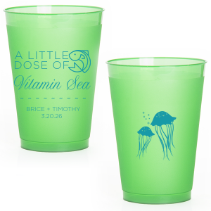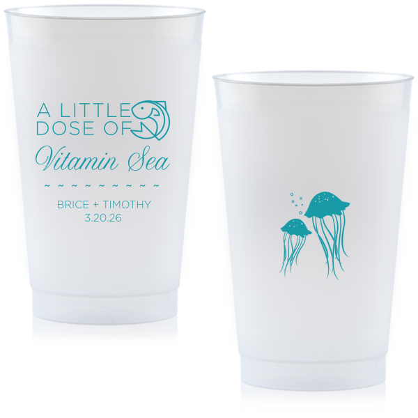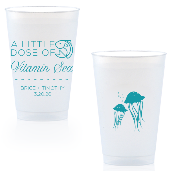 Zoom Show guides Loading product Vitamin Sea Cup 12-oz. Frosted Cup Design ID: 1389 Click on swatch to see options Choose Your Screen Print Active Color Metallic Cup Ink Metallic Cup Ink Silver Ink Gold Ink Copper Ink Matte Cup Ink Matte Cup Ink Matte Chocolate Ink Matte Black Ink Matte Slate Gray Ink Matte White Ink Matte Sunflower Ink Matte Moss Green Ink Matte Sage Ink Matte Leaf Ink Matte Spruce Matte Teal/Peacock Ink Matte Sky Blue Ink Matte French Blue Ink Matte Royal Blue Ink Matte Navy Ink Matte Cobalt Ink Matte Lavender Ink Matte Ballet Pink Ink Matte Fuchsia Ink Matte Lipstick Red Ink Matte Merlot Ink Matte Tangerine Ink Personalize Your Text Line 4 Line 5 Personalize further with different fonts, graphics, positioning, and sizes. (Optional) Customize More Choose Your Quantity Subtotal PRICE INCLUDES: Select a Proof Option: Print As Is I confirm that I have reviewed my design and I understand it will be produced as shown and no proof will be provided. Digital Proof + $15 I would like an expert FYP designer to look at my design, make minor corrections if necessary, and send me a black and white proof before the order is produced. Orders delivered as soon as 12.19.2025. Exclusions apply. Share Your Design About This Design A Little Dose of Vitamin Sea cups with a fish clipart are a cute and quirky way to serve drinks at your destination wedding or bachelorette/bachelor party. Product Details Product Details Minimum order of 50 Measures 4.25" tall and 3.25" wide at the top Holds 11.10 oz flush fill volume Perfect for mixed drinks and signature cocktails BPA-free and recyclable Shatterproof and top-rack dishwasher safe Bulk discounts available Expedited shipping options available. Product Description Product Description Frost flex cups from For Your Party are a perfect accessory for any event, from weddings to birthdays. Their translucent plastic complements any drink or color scheme, and can have any art you can imagine. They’re also reusable, so your guests can have a keepsake from your special day. Like our 10 oz. frost flex cups, our 12 oz. frost flex cups are made in the USA, BPA free, and can be hand-washed again and again to remember your event. Our 12 oz. size has the same shape as our 10 oz. size, and is perfect for when you want just a little more space. It has a flush fill volume of 11.1 oz. Product Options 12-oz. Frosted Cup 12oz Frost Flex Color 16-oz. Frosted Cup 16oz Frost Flex Color 14-oz.Frosted Cup 24-oz. Frosted Cup 10-oz.Frosted Cup 9-oz. Frosted Cup Related Products 12-oz. Frosted Cup 12oz Frost Flex Color 16-oz. Frosted Cup 16oz Frost Flex Color 14-oz.Frosted Cup 24-oz. Frosted Cup 10-oz.Frosted Cup 9-oz. Frosted Cup