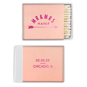 Zoom Show guides Loading product Wedding Arrow Matchbox Classic Matchbox Design ID: 12644 Click on swatch to see options Choose Your Paper Color Active Color Linen Linen Slightly textured, matte finish. Double-sided color. 100lb+ cover stock. Linen Convertible Red Linen Black Linen Slate Linen Antique Gray Linen White Linen Eggshell Linen Ivory Linen Pearl Cream Linen Navy Blue Shiny Shiny Smooth, high-gloss finish. Single-sided color. 100lb+ cover stock. Shiny Black Shiny White Shiny Navy Blue Shiny Fuchsia Shiny Convertible Red Stardream Stardream European Stardream with iridescent finish. Double-sided color. 105lb+ cover stock. Stardream NEW Black Stardream Galvanized Silver Stardream Silver Stardream Crystal White Stardream Ivory Stardream 18k Gold Stardream Champagne Stardream Old Gold Stardream Super Gold Stardream Orange Stardream Rose Gold Stardream Blush Stardream Ballet Pink Stardream Plum Stardream Violet Stardream Lavender Stardream Denim Stardream NEW Peacock Stardream Robin's Egg Blue Poptone Poptone Soft felt texture with matte finish. Double-sided color. 100lb+ cover stock. Poptone Ballet Pink Poptone NEW Fuchsia Poptone Convertible Red Poptone Tangerine Poptone Sunflower Poptone Yellow Poptone Mimosa Poptone Mint Poptone Robin’s Egg Blue Poptone Dark Turquoise Poptone Sky Blue Poptone NEW French Blue Poptone Lavender Natural Natural Smooth, matte finish. Double-sided color. 100lb+ cover stock. Natural NEW Sand Natural Spruce Natural Khaki Natural NEW Kraft Natural Mushroom Natural NEW Chocolate Natural Black Natural Slate Natural Clay Gray Natural Gray Natural Smoke Natural NEW Frost White Natural Ivory Natural Leaf Natural Dark Teal Natural NEW Amethyst Natural Scarlet Natural Antique Rose Natural Harvest Natural Dark Sage Textured Textured Variety of textures. Single-sided color. 110lb+ cover stock. Oak Wood Walnut Wood Ebony Wood Ash Wood Birch Wood Leather Like Tan Leather Like Black Leather Like Pearl Leather Like White Leather Like Night Blue Leather Like Lipstick Red Horizontal White Patterned* - Premium Product Patterned* - Premium Product Smooth, matte finish. Single-sided pattern with white back. Pattern and color may vary between products. 100 lb paper. Premium pricing applies. Marble Sand Marble Gray Marble Navy Marble Taupe Marble Blush Watercolor Seaglass Watercolor Ocean Watercolor Night Fall Watercolor Sangria Watercolor Hibiscus Watercolor Rose Watercolor Sunrise Leaf Sand Leaf Fern Leaf Rain Leaf Rose Blank Stock Blank Stock Blank Stock Glitter* - Premium Product Glitter* - Premium Product Sparkly with a slightly textured finish. Single-sided with a white back and 100lb+ cover stock. Premium pricing applies. Glitter NEW Black Glitter NEW Silver Glitter Champagne Glitter Rose Copper Glitter Night Fall Choose Your Imprint Foil Color Active Color Shiny Foil Shiny Foil Metallic, lustrous finish. *Specialty patterned foil may vary on final print Shiny Champagne Shiny Sterling Silver Shiny 18 Kt Gold Shiny Kiwi / Lime Shiny Leaf Shiny Jade Shiny Royal Blue Shiny Amethyst Shiny Fuchsia Shiny Rose Quartz Shiny Rose Gold NEW Shiny Merlot Shiny Convertible Red Shiny Poppy Shiny Copper *Shiny Holographic Gold *Shiny Holographic Silver *Shiny Rainbow Matte Foil Matte Foil Flat finish. Matte NEW Chocolate Matte Black Matte Slate Gray Matte Dove Grey Matte White Matte Ivory Matte Mimosa Yellow Matte Sunflower Matte Key Lime Matte Leaf Matte Spruce Matte Teal/Peacock Matte Azure Matte Royal Blue Matte Navy Matte Amethyst Matte Pastel Pink Matte Ballet Pink Matte Fuchsia Matte Lipstick Red Matte Merlot Matte Tangerine Satin Foil Satin Foil Muted sheen, brushed finish. Satin Sterling Silver Satin 18 Kt. Gold Satin Copper Penny Satin Fuchsia Satin Lipstick Red Satin Leaf Satin Teal / Peacock Satin French Blue Satin Plum Personalize Your Text Line 1 Line 2 Line 3 Line 4 Personalize further with different fonts, graphics, positioning, and sizes. (Optional) Customize More Choose Your Quantity Subtotal PRICE INCLUDES: Select a Proof Option: Print As Is I confirm that I have reviewed my design and I understand it will be produced as shown and no proof will be provided. Digital Proof + $15 I would like an expert FYP designer to look at my design, make minor corrections if necessary, and send me a black and white proof before the order is produced. Orders delivered as soon as 11.06.2025. Exclusions apply. Share Your Design About This Design Strike a spark of celebration with the Wedding Arrow Matchbox, where an elegant 'Mr & Mrs' arch crowns the shared surname, accented by a dynamic shooting arrow. The back holds the date and locale, marking the start of the couple's forever Product Details Product Details Minimum order of 50 Measures 2.22" wide by 1.375" long by 0.46" high Includes approximately 19 matchsticks Expedited shipping options available. Product Description Product Description Our classic matchboxes are the perfect addition to your birthday, wedding, or any other event. A bowl of custom matchboxes is the perfect way to make an impression as a home decor accent or party favor. Your friends and guests will be impressed with your attention to detail!Like our square matchboxes, our classic matchboxes feature a sliding tray for the matches inside a durable cardboard case that’s covered in a paper of your choice. They’re long-lasting, reliable, and can be used with any one of our wide variety of paper colors. Product Options Classic Matchbox Square Matchbox Horizontal Triangle Matchbox Lipstick Matchbox Related Products Classic Matchbox Square Matchbox Horizontal Triangle Matchbox Lipstick Matchbox