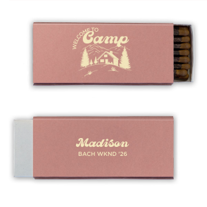 Zoom Show guides Loading product Welcome to Camp Bachelorette Matchbox Square Matchbox Design ID: 3205695 This Product is OUT OF STOCK Explore other party essentials Orders delivered as soon as 11.05.2025. Exclusions apply. Share Your Design About This Design Create a keepsake for your special event the Welcome to Camp Bachelorette Matchbox. The scenic design is ideal for destination bachelorette events but is suitable for any outdoorsy occasion. Perfect for lighting fires or candles, the customizable matchbox design makes for wonderful mementos of your momentous party occasion. Product Details Product Details Minimum order of 50 Measures 2.125" wide by 1.825" long by 0.375" high Includes approximately 23 matchsticks Expedited shipping options available. Product Description Product Description Want a classic matchbox, but with a bit more space and a distinctive shape? Square matchboxes from For Your Party are the perfect detail for your wedding, or any event where you want a bit more room for your artwork. They make great favors, and the distinctive square shape makes sure they stand out!Like our classic matchboxes, our square matchboxes feature a durable cardboard body wrapped with the paper and printing color of your choice. This allows for a long-lasting, distinctive matchbox that’s a far cry from matches from a bar. Try them for your event, or gift them to a friend! Product Options Square Matchbox Two-Chamber Matchbox Classic Matchbox Candle Matchbox Cigar Matchbox Related Products Square Matchbox Two-Chamber Matchbox Classic Matchbox Candle Matchbox Cigar Matchbox