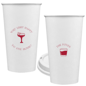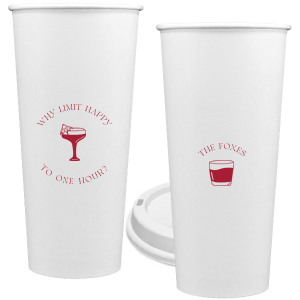 Zoom Show guides Loading product Why Limit Happy Hour Cup 12-oz. Frosted Cup Design ID: 2815580 Click on swatch to see options Choose Your Screen Print Active Color Metallic Cup Ink Metallic Cup Ink Silver Ink Gold Ink Copper Ink Matte Cup Ink Matte Cup Ink Matte Chocolate Ink Matte Black Ink Matte Slate Gray Ink Matte White Ink Matte Sunflower Ink Matte Moss Green Ink Matte Sage Ink Matte Leaf Ink Matte Spruce Ink Matte Teal/Peacock Ink Matte Sky Blue Ink Matte French Blue Ink Matte Royal Blue Ink Matte Navy Ink Matte Cobalt Ink Matte Lavender Ink Matte Ballet Pink Ink Matte Fuchsia Ink Matte Lipstick Red Ink Matte Merlot Ink Matte Tangerine Ink Personalize Your Text Line 1 Line 2 Line 3 Personalize further with different fonts, graphics, positioning, and sizes. (Optional) Customize More Choose Your Quantity Subtotal PRICE INCLUDES: Select a Proof Option: Print As Is I confirm that I have reviewed my design and I understand it will be produced as shown and no proof will be provided. Digital Proof + $15 I would like an expert FYP designer to look at my design, make minor corrections if necessary, and send me a black and white proof before the order is produced. Orders delivered as soon as 05.20.2026. Exclusions apply. Share Your Design About This Design Extend the joy with the Why Limit Happy Hour Cup, perfect for wedding cocktail hours or home entertainment, personalized with your family name. Emblazoned with "Why limit happy to one hour?" and a delightful cocktail graphic, it invites guests to savor every moment. Product Details Product Details Minimum order of 50 Measures 4.25" tall and 3.25" wide at the top Holds 11.10 oz flush fill volume Perfect for mixed drinks and signature cocktails BPA-free and recyclable Shatterproof and top-rack dishwasher safe Bulk discounts available Expedited shipping options available. Product Description Product Description Frost flex cups from For Your Party are a perfect accessory for any event, from weddings to birthdays. Their translucent plastic complements any drink or color scheme, and can have any art you can imagine. They’re also reusable, so your guests can have a keepsake from your special day. Like our 10 oz. frost flex cups, our 12 oz. frost flex cups are made in the USA, BPA free, and can be hand-washed again and again to remember your event. Our 12 oz. size has the same shape as our 10 oz. size, and is perfect for when you want just a little more space. It has a flush fill volume of 11.1 oz. Product Options 12-oz. Frosted Cup 14-oz.Frosted Cup 16-oz. Frosted Cup 20-oz. Frosted Cup 24-oz. Frosted Cup 10-oz.Frosted Cup 12-oz. Styrofoam Cup 16-oz. Styrofoam Cup 20-oz. Styrofoam Cup 16-oz.Stadium Cup 22-oz. Stadium Cup 32-oz. Stadium Cup 16-oz. Color Changing Cup 9-oz. Frosted Cup 8oz Paper Cup 12oz Paper Cup 16oz Paper Cup 8oz Paper Cup 12oz Paper Cup 16oz Paper Cup 20oz Paper Cup 24oz Paper Cup Related Products 12-oz. Frosted Cup 14-oz.Frosted Cup 16-oz. Frosted Cup 20-oz. Frosted Cup 24-oz. Frosted Cup 10-oz.Frosted Cup 12-oz. Styrofoam Cup 16-oz. Styrofoam Cup 20-oz. Styrofoam Cup 16-oz.Stadium Cup 22-oz. Stadium Cup 32-oz. Stadium Cup 16-oz. Color Changing Cup 9-oz. Frosted Cup 8oz Paper Cup 12oz Paper Cup 16oz Paper Cup 8oz Paper Cup 12oz Paper Cup 16oz Paper Cup 20oz Paper Cup 24oz Paper Cup
