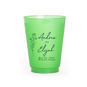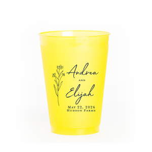 Zoom Show guides Loading product Wildflower Couple Names Wedding Cup 5-oz. Frosted Cup Design ID: 1459027 Click on swatch to see options Choose Your Screen Print Active Color Metallic Cup Ink Metallic Cup Ink Silver Ink Gold Ink Copper Ink Matte Cup Ink Matte Cup Ink Matte Chocolate Ink Matte Black Ink Matte Slate Gray Ink Matte White Ink Matte Sunflower Ink Matte Moss Green Ink Matte Sage Ink Matte Leaf Ink Matte Spruce Ink Matte Teal/Peacock Ink Matte Sky Blue Ink Matte French Blue Ink Matte Royal Blue Ink Matte Navy Ink Matte Cobalt Ink Matte Lavender Ink Matte Ballet Pink Ink Matte Fuchsia Ink Matte Lipstick Red Ink Matte Merlot Ink Matte Tangerine Ink Personalize Your Text Line 1 Line 2 Line 3 Line 4 Personalize further with different fonts, graphics, positioning, and sizes. (Optional) Customize More Choose Your Quantity Subtotal PRICE INCLUDES: Select a Proof Option: Print As Is I confirm that I have reviewed my design and I understand it will be produced as shown and no proof will be provided. Digital Proof + $15 I would like an expert FYP designer to look at my design, make minor corrections if necessary, and send me a black and white proof before the order is produced. Orders delivered as soon as 04.27.2026. Exclusions apply. Share Your Design About This Design Embrace nature’s charm with the Wildflower Couple Names Wedding Cup, featuring a delicate wildflower stalk alongside the couple’s names in a simple, organic script. Perfect for celebrations that revel in the beauty of the outdoors and natural elegance, this cup subtly includes the event date and location. Product Details Product Details Minimum order of 50 Measures 3" tall and 2.5" wide at the top Holds 5.28 oz flush fill volume Ideal for wine and spirits on the rocks BPA-free and recyclable Shatterproof and top-rack dishwasher safe Bulk discounts available Expedited shipping options available. Product Description Product Description Custom printed frost flex cups from For Your Party are a classic standby for any event, from weddings to birthdays. Their translucent plastic complements any drink or decor, and are reusable, so your guests can have a keepsake from your special day. Like our 10 oz. frost flex cups, our 5 oz. frost flex cups are made in the USA, BPA free, and can be hand-washed again and again to remember your event. Our 5 oz. size is perfect for appetizers and spirits, and has a flush fill volume of 5.28 oz. Product Options 10-oz.Frosted Cup 12-oz. Frosted Cup 5-oz. Frosted Cup 9-oz. Frosted Cup 12oz Frost Flex Color 14-oz.Frosted Cup 16-oz. Frosted Cup 16oz Frost Flex Color 20-oz. Frosted Cup 24-oz. Frosted Cup 12-oz. Stadium Cup 8-oz.Frosted Cup 16-oz. Plastic Party Cup 5-oz. Hard Plastic Cup 8-oz. Hard Plastic Cup 9-oz. Hard Plastic Cup 10-oz. Hard Plastic Cup 12-oz. Hard Plastic Cup 14-oz. Hard Plastic Cup 16-oz. Hard Plastic Cup 8-oz. Soft Plastic Cup 9-oz. Soft Plastic Cup 10-oz. Soft Plastic Cup 12-oz. Soft Plastic Cup 16-oz. Soft Plastic Cup 20-oz. Soft Plastic Cup 24-oz. Soft Plastic Cup 32-oz. Soft Plastic Cup 3-oz. Soft Plastic Cup Related Products 10-oz.Frosted Cup 12-oz. Frosted Cup 5-oz. Frosted Cup 9-oz. Frosted Cup 12oz Frost Flex Color 14-oz.Frosted Cup 16-oz. Frosted Cup 16oz Frost Flex Color 20-oz. Frosted Cup 24-oz. Frosted Cup 12-oz. Stadium Cup 8-oz.Frosted Cup 16-oz. Plastic Party Cup 5-oz. Hard Plastic Cup 8-oz. Hard Plastic Cup 9-oz. Hard Plastic Cup 10-oz. Hard Plastic Cup 12-oz. Hard Plastic Cup 14-oz. Hard Plastic Cup 16-oz. Hard Plastic Cup 8-oz. Soft Plastic Cup 9-oz. Soft Plastic Cup 10-oz. Soft Plastic Cup 12-oz. Soft Plastic Cup 16-oz. Soft Plastic Cup 20-oz. Soft Plastic Cup 24-oz. Soft Plastic Cup 32-oz. Soft Plastic Cup 3-oz. Soft Plastic Cup