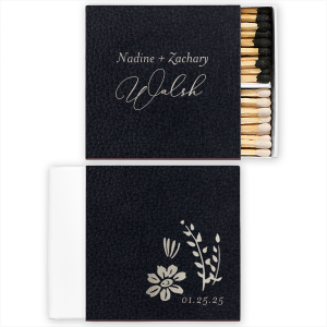 Zoom Show guides Loading product Wildflower Names Match Square Matchbox Horizontal Design ID: 878124 This Product is OUT OF STOCK Explore other party essentials Orders delivered as soon as 11.12.2025. Exclusions apply. Share Your Design About This Design The Artistic Flair Wildflower Wedding Script Names Match elegantly merges sophistication with creativity. One side stylishly presents the couple’s first names. The design’s centerpiece is their last name in a grand script. The reverse features an elegant botanical motif with the event date, beautifully embodying their matrimonial journey. Product Details Product Details Minimum order of 50 Measures 2.125" wide by 1.825" long by 0.375" high Includes approximately 23 matchsticks Expedited shipping options available. Product Description Product Description Want a classic matchbox, but with a bit more space and a distinctive shape? Square matchboxes from For Your Party are the perfect detail for your wedding, or any event where you want a bit more room for your artwork. They make great favors, and the distinctive square shape makes sure they stand out!Like our classic matchboxes, our square matchboxes feature a durable cardboard body wrapped with the paper and printing color of your choice. This allows for a long-lasting, distinctive matchbox that’s a far cry from matches from a bar. Try them for your event, or gift them to a friend! Product Options Square Matchbox Horizontal Classic Matchbox Triangle Matchbox Two-Chamber Matchbox Related Products Square Matchbox Horizontal Classic Matchbox Triangle Matchbox Two-Chamber Matchbox